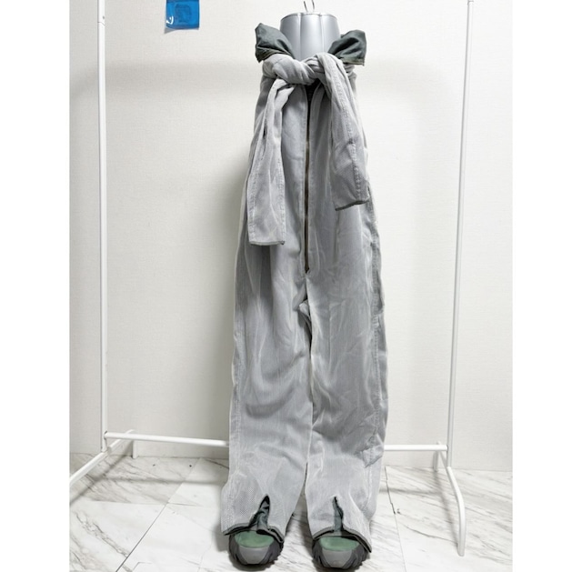 usaf mesh pilot suit all-in-one デザイナーズブランドかと思える程のディテール この時期はそのまま着てコートの下からメッシュを見せて、春夏は腰でギュッと絞ってどつぞ またこちらのモデル、袖丈や股下が足りない物が多い中、178cmの自分でも着れる希少な大きめサイズ おそらく最大サイズかと size : 着丈145.5肩幅54身幅59袖丈59股下67わたり32〜33裾幅17 model 178/70 メッシュ部分、左背中、裾などその他に少しだけ薄くシミ 細部に糸出ほつれ 多少ですが、軍物の匂いがします、自分は問題なく着ていましたが、神経質な方は洗えるのでバケツと洗剤でどうぞ 自分の香水の匂いが付いています Euro vintage ユーロヴィンテージ ビンテージ 50s 60s 70s made in usa usa製 y2k 90s 00s パンツ スラックス ジャケット シャツ ミリタリー 軍モノ