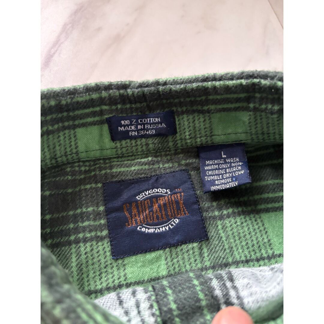 90s made in Rossiya light green shadow check print flannel shirt