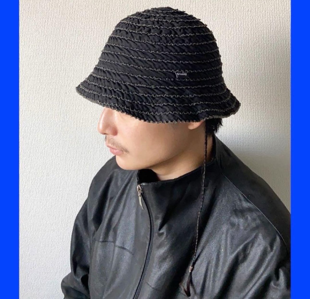 オールブラックにフリンジの様な仕様 浅めツバ程良く長めで美しいシルエット