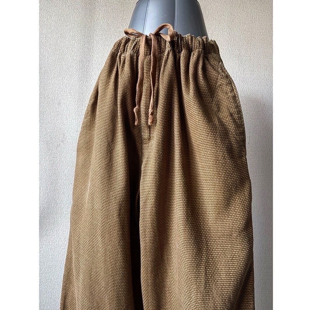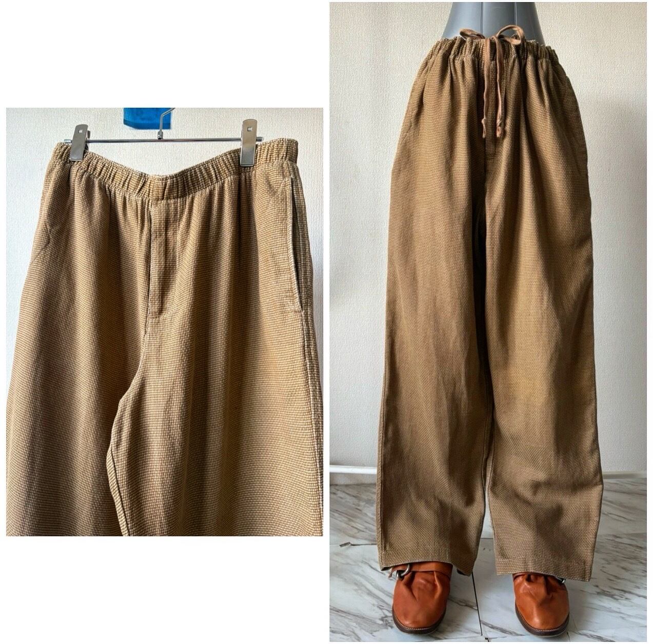 size : 表記l(実寸l程度)ウエスト通常時80(60〜104程度までゴム+ドローコードで調節可能)股上34(ウエスト最上部から)股下76.5わたり35程度裾幅21.5サイドの全長105