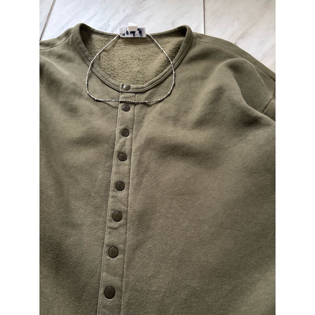13連スナップボタン ブラックではなく珍しいオリーブグリーン 開けても閉めても、掛け間違えても良し 肉厚スウェット生地