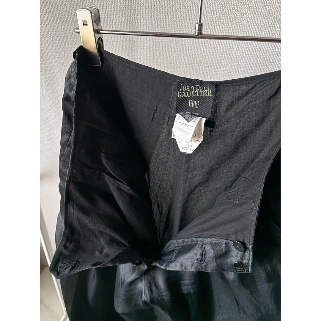 vintage made in italy 80s 〜 90s jean paul gaultier femme black silk 100% low-rise buggy silhouette slacks