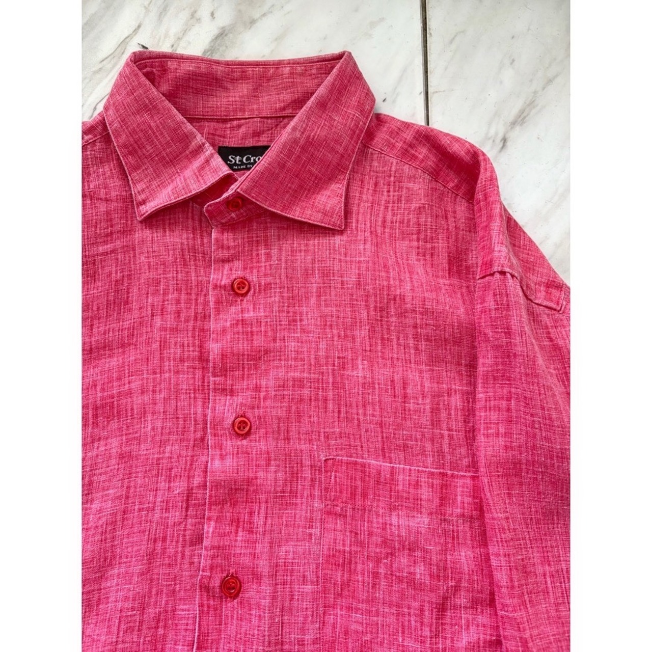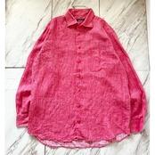 プルンと風に靡くリネン100 目の覚める様な少し赤みがかったヴィヴィットピンク 同系色のボタンも良し