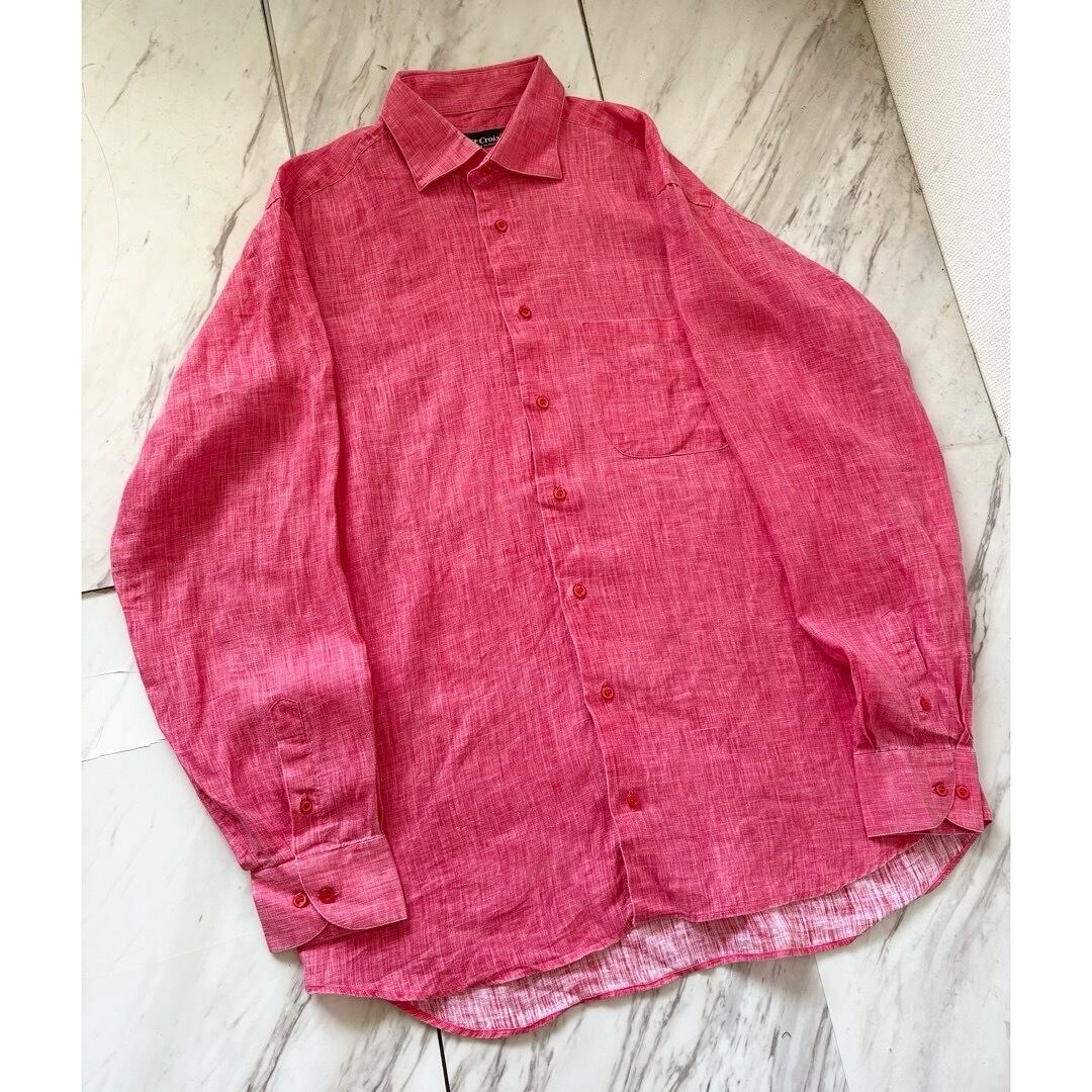 90s made in italy vivid pink linen 100% shirt