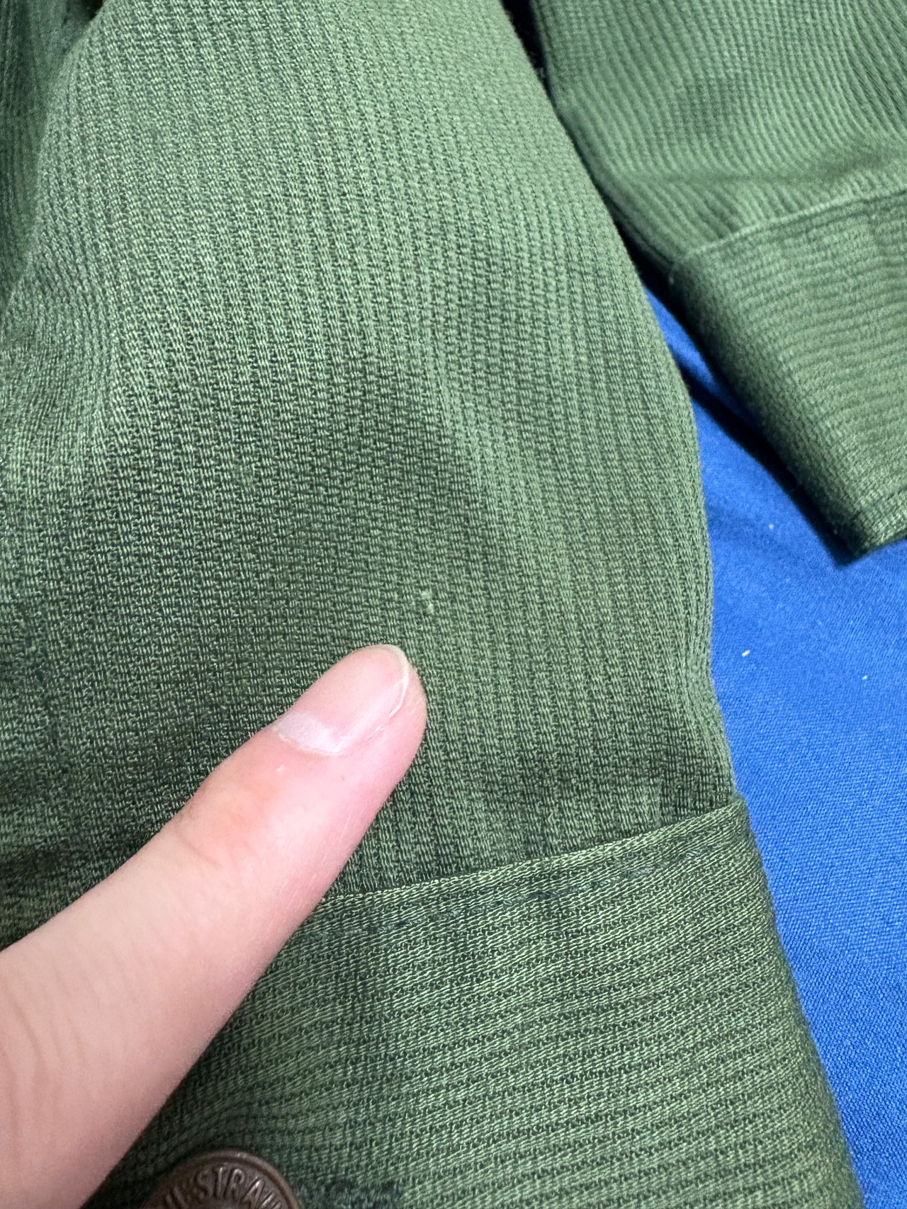 袖に全く目立たない程度のスレーキ 袖口付近に小傷 その他目立たないアタリなどはありますが、とても綺麗な状態です