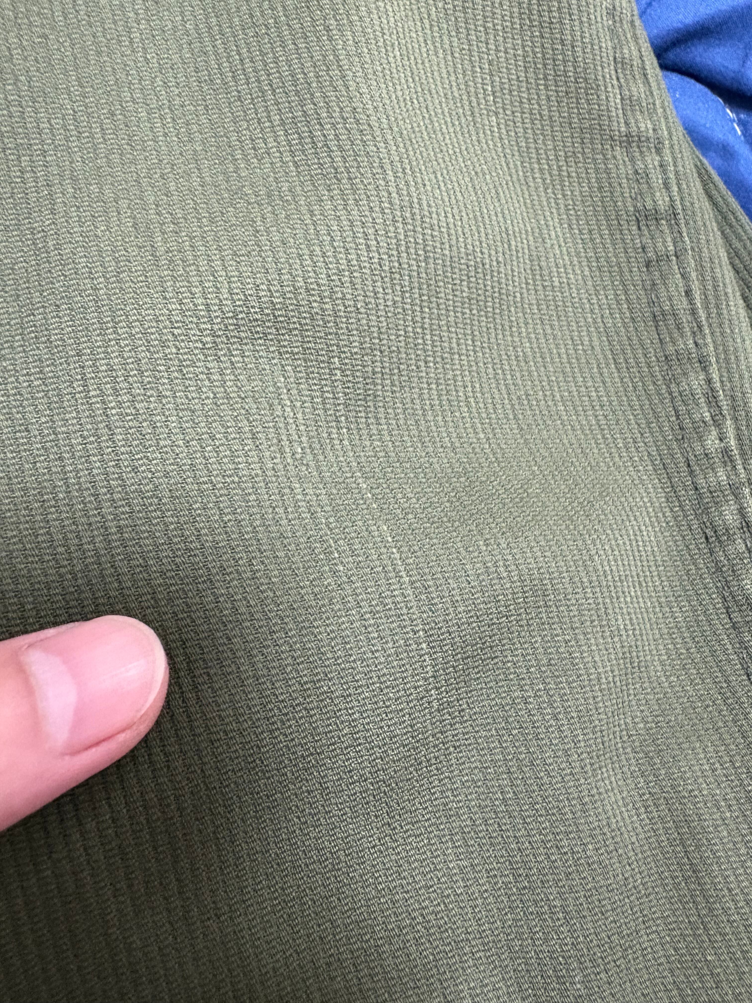 コットンピケのオリーブグリーン ピケの潰れもなく極上のコンディション 今っぽい短丈のシルエット