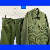 vintage 70s Levi's 70505 cotton piqué olive green tracker jacket