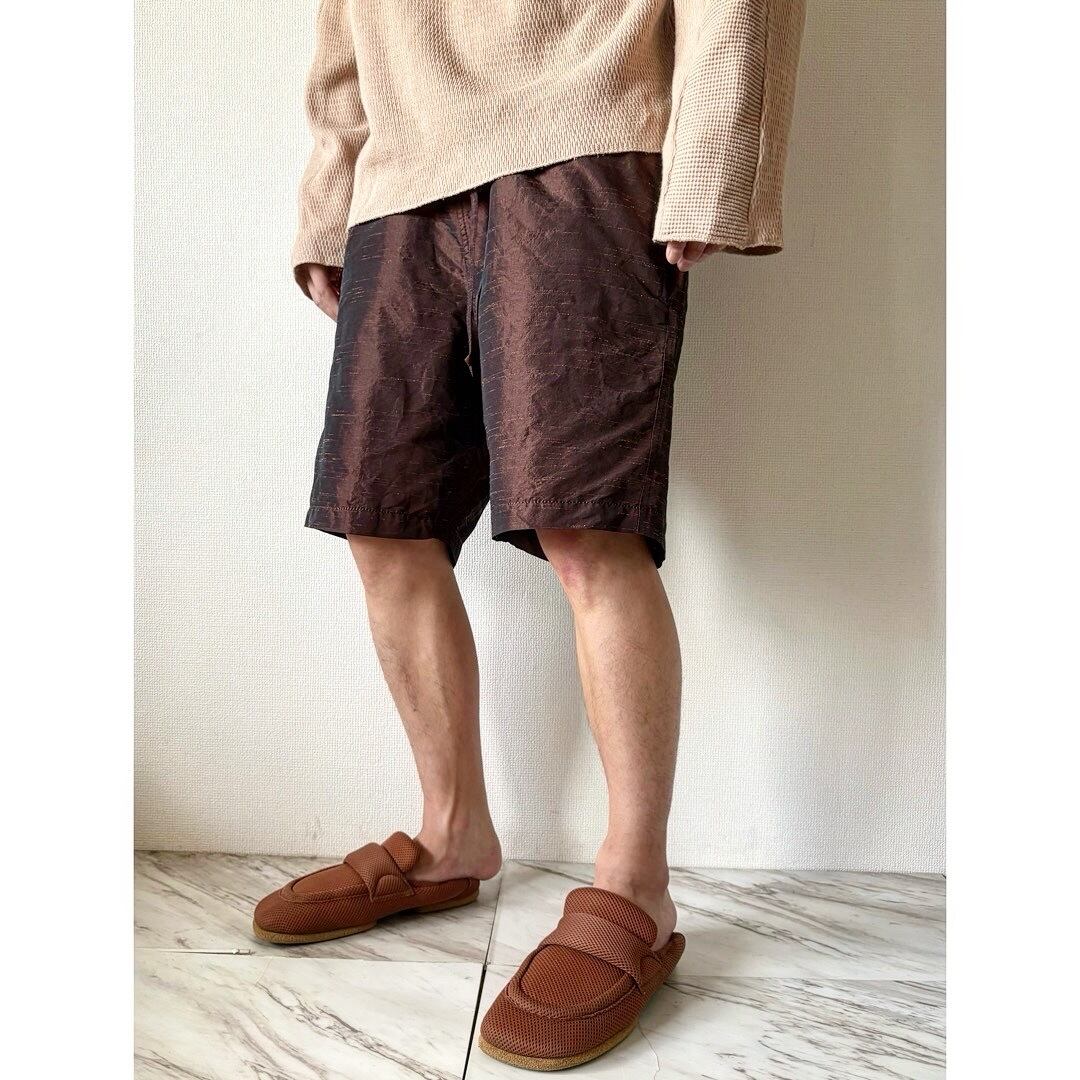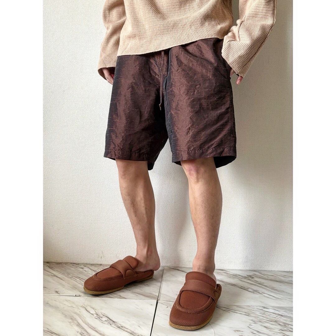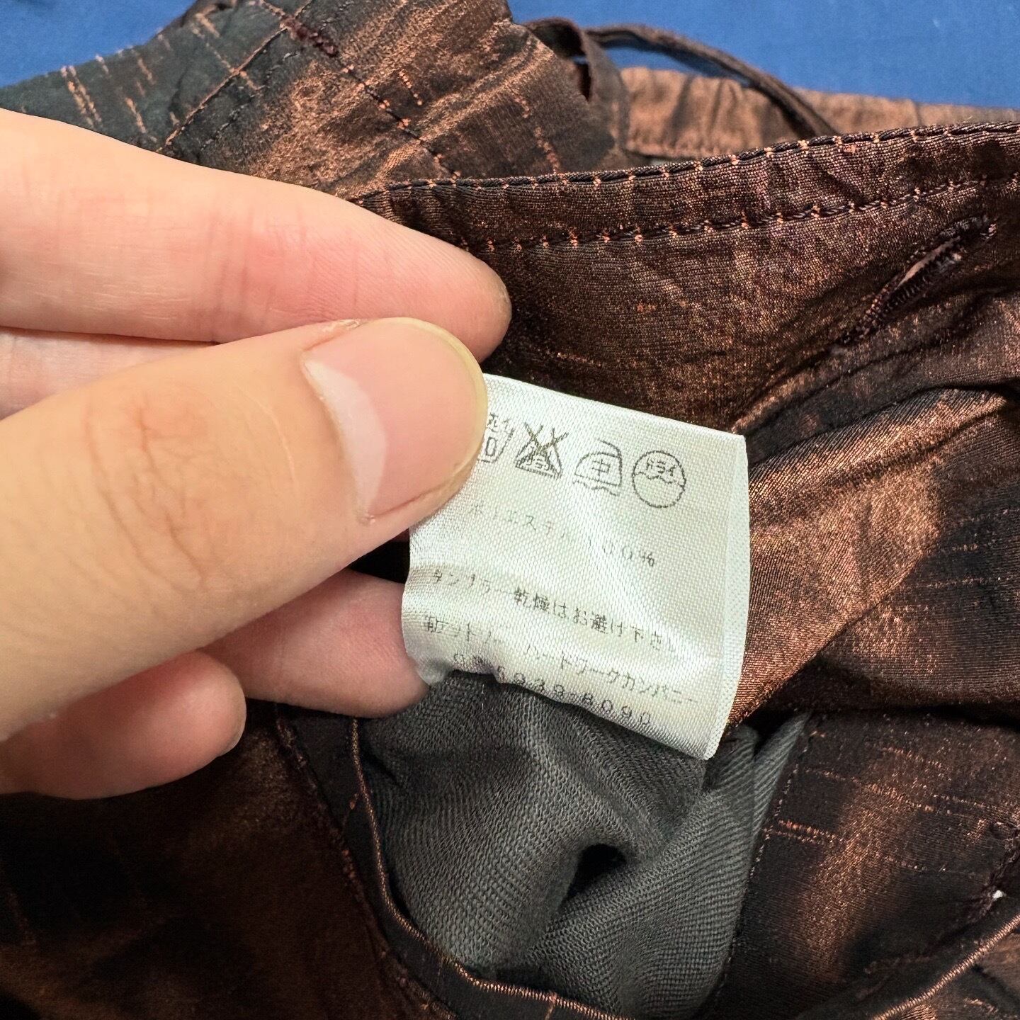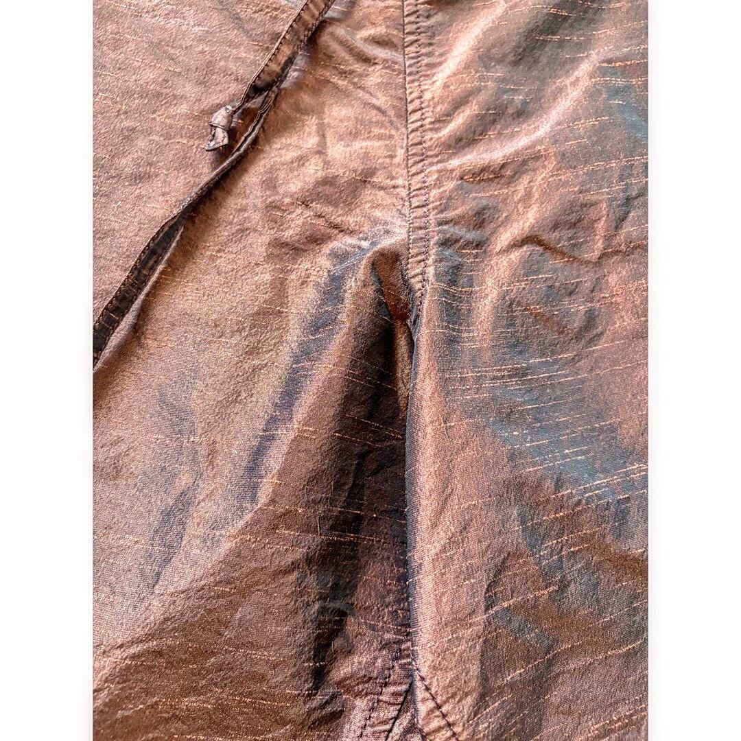 強めの玉虫色×強めのカスリ加工 ポリエステル100%ですが、生地感としてはもっと硬くとしたハリのある生地です ヴィンテージのガサガサとしたシルク素材が一番材質としては似ています