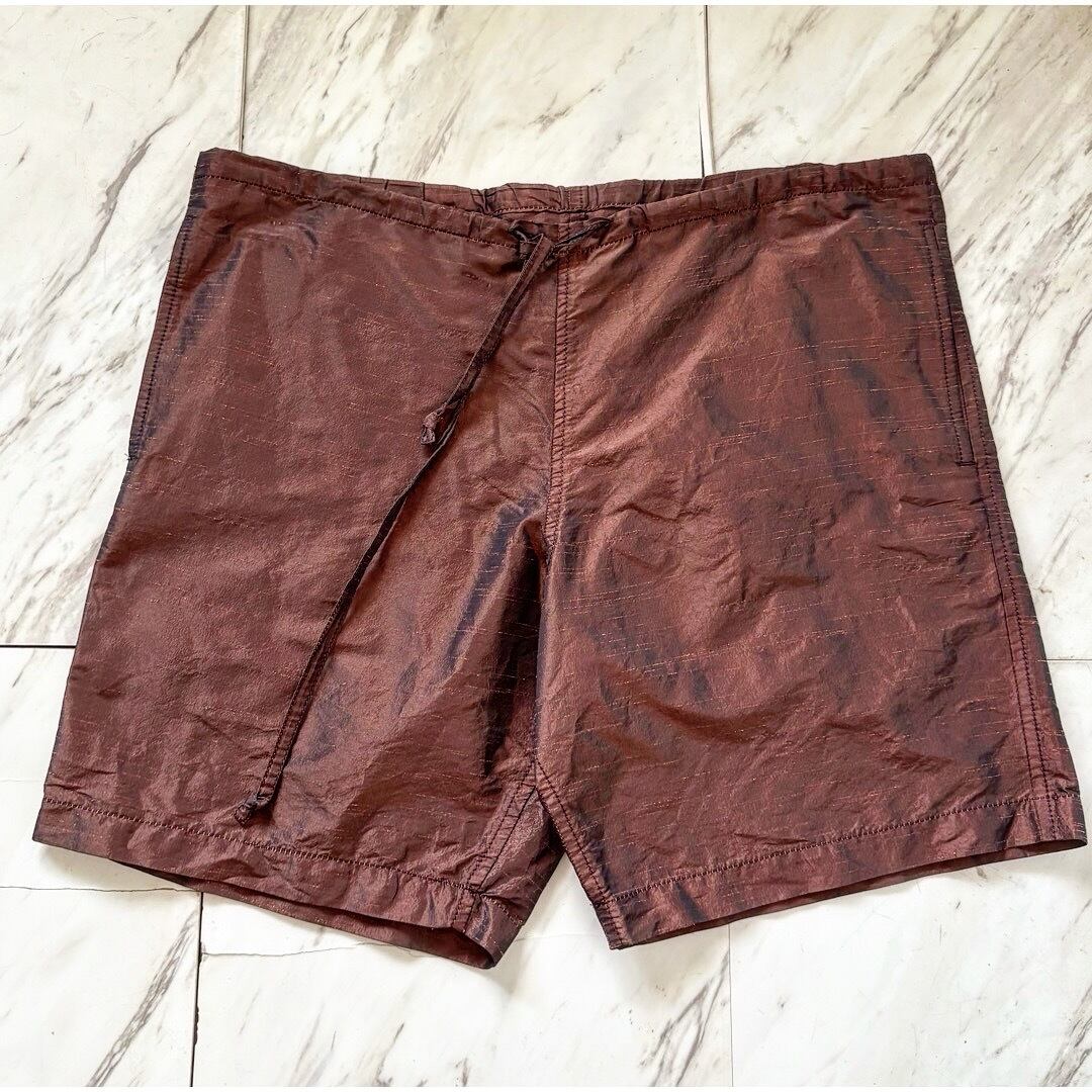 size: 表記small(実寸m〜l相当)ウエスト98通常時(55〜98程度までドローコードで調節可能)股上28(ウエスト最上部から)股下19.5わたり43裾幅29サイドの全長42.5