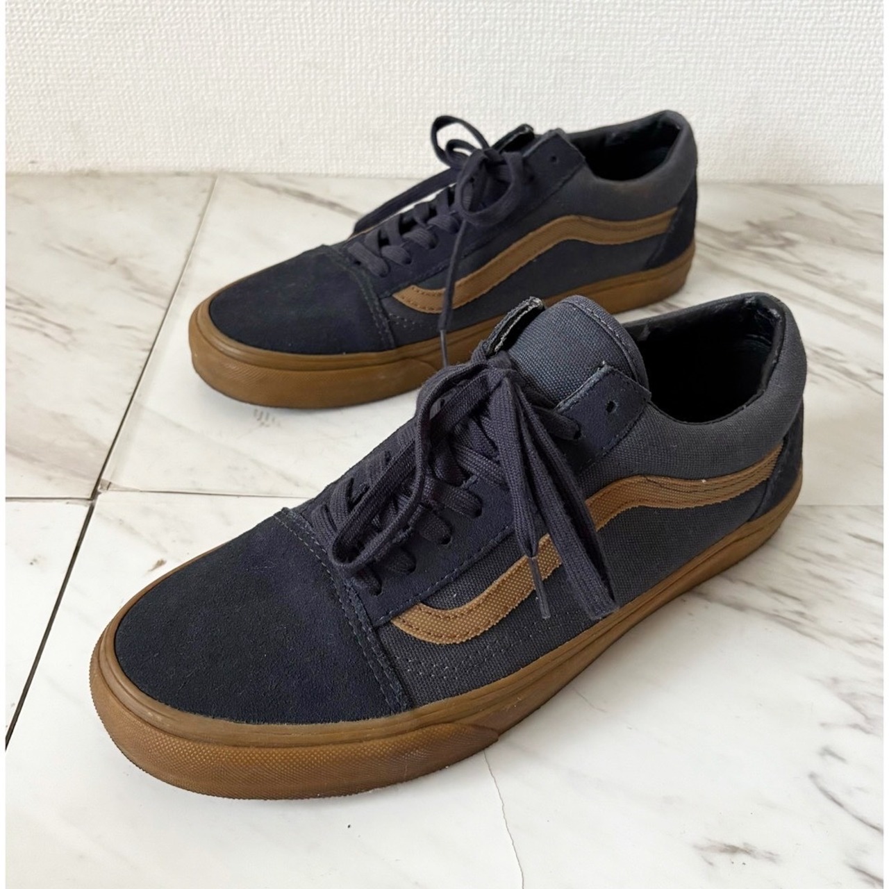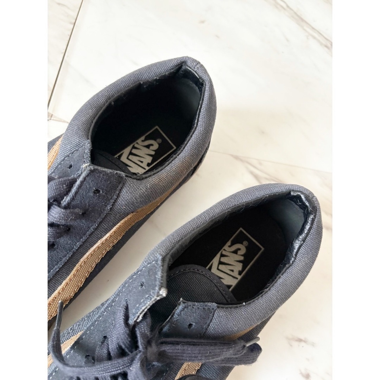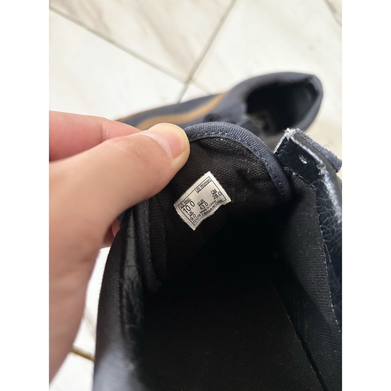 トゥはスエード、サイドはコットンキャンパスの切り替え サイドラインとガムソールの色が同じで、ネイビーか、ベージュ、ブラウンのパンツと合わせた時まとまります