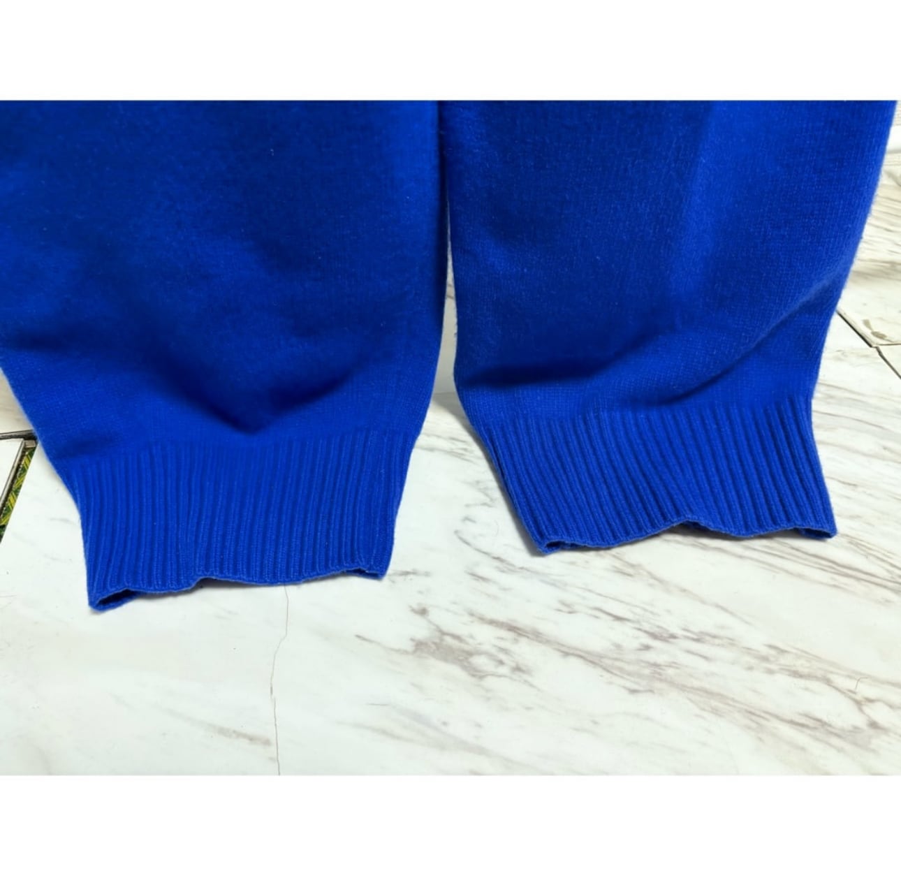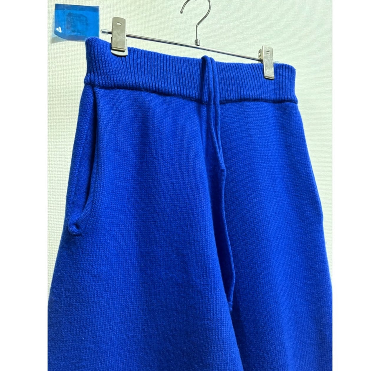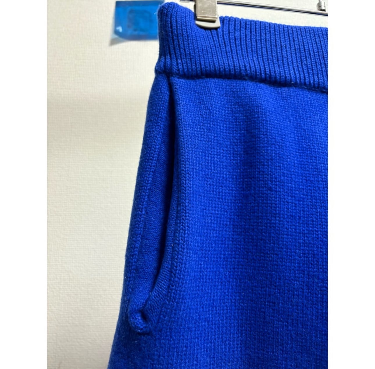 鮮やかなロイヤルブルー ニットパンツできちんとポケット付き 股上もかなり深いのでニットパンツ特有の股の膨らみも軽減してくれます メンズで大きく履けるニットパンツ自体珍しいですね