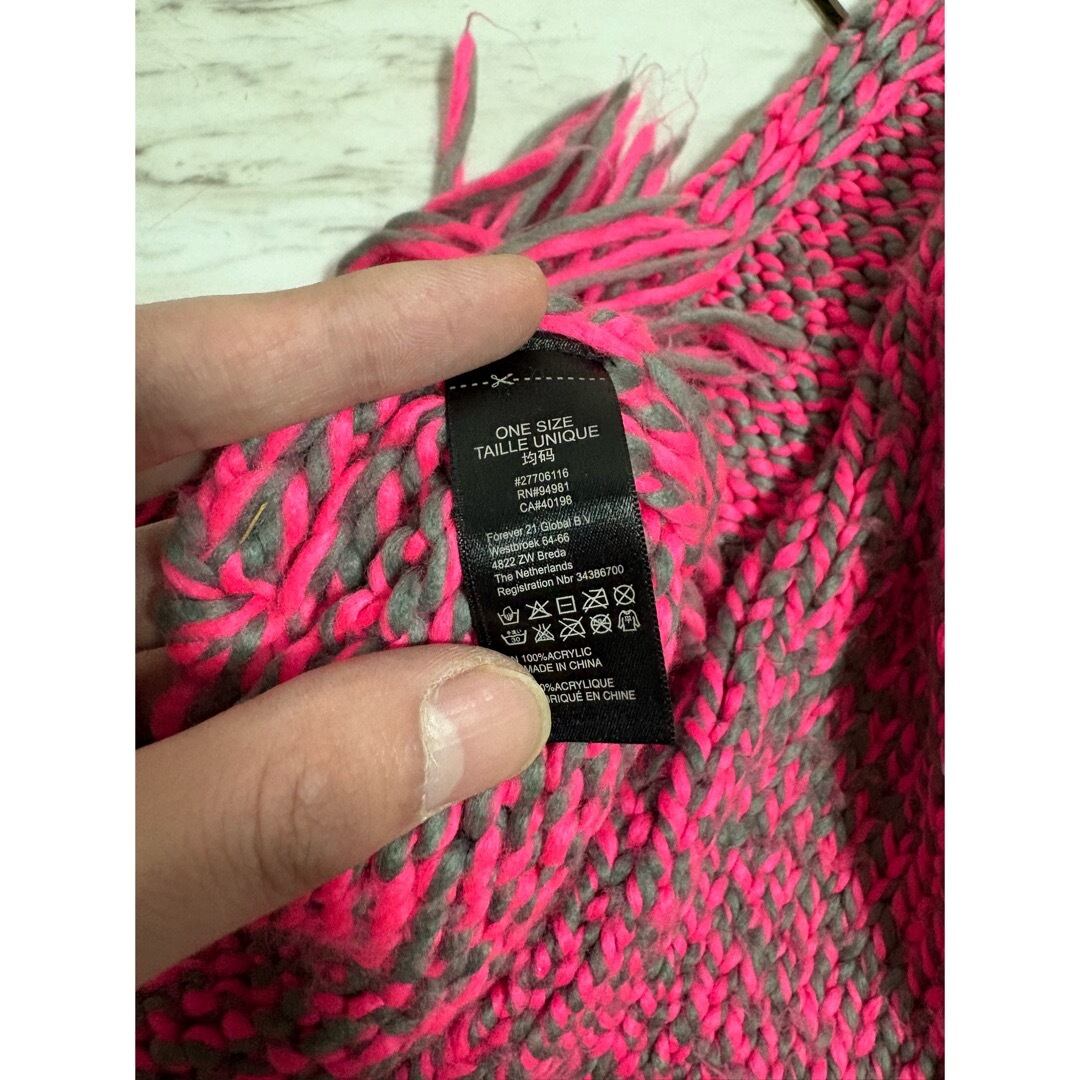 目の覚める様なヴィヴィッドピンク×ダークミントグリーングレーのミックスアクリルニット生地