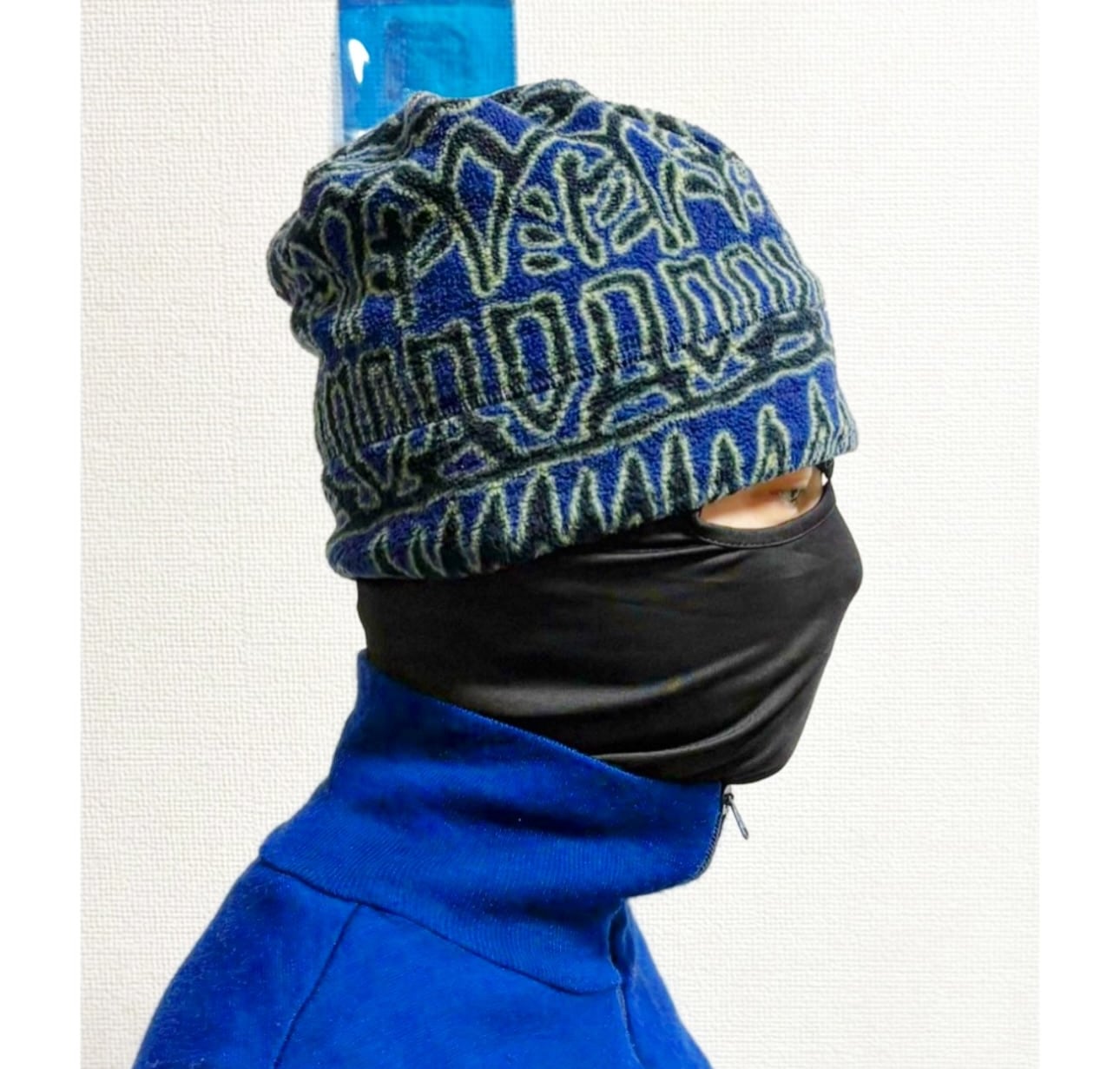 この手の90年代のパタゴニアのフリースキャップは小さい物が多く被れない人が多いですが、こちらはサイズLで頭大きめの自分でも被ることが出来ます