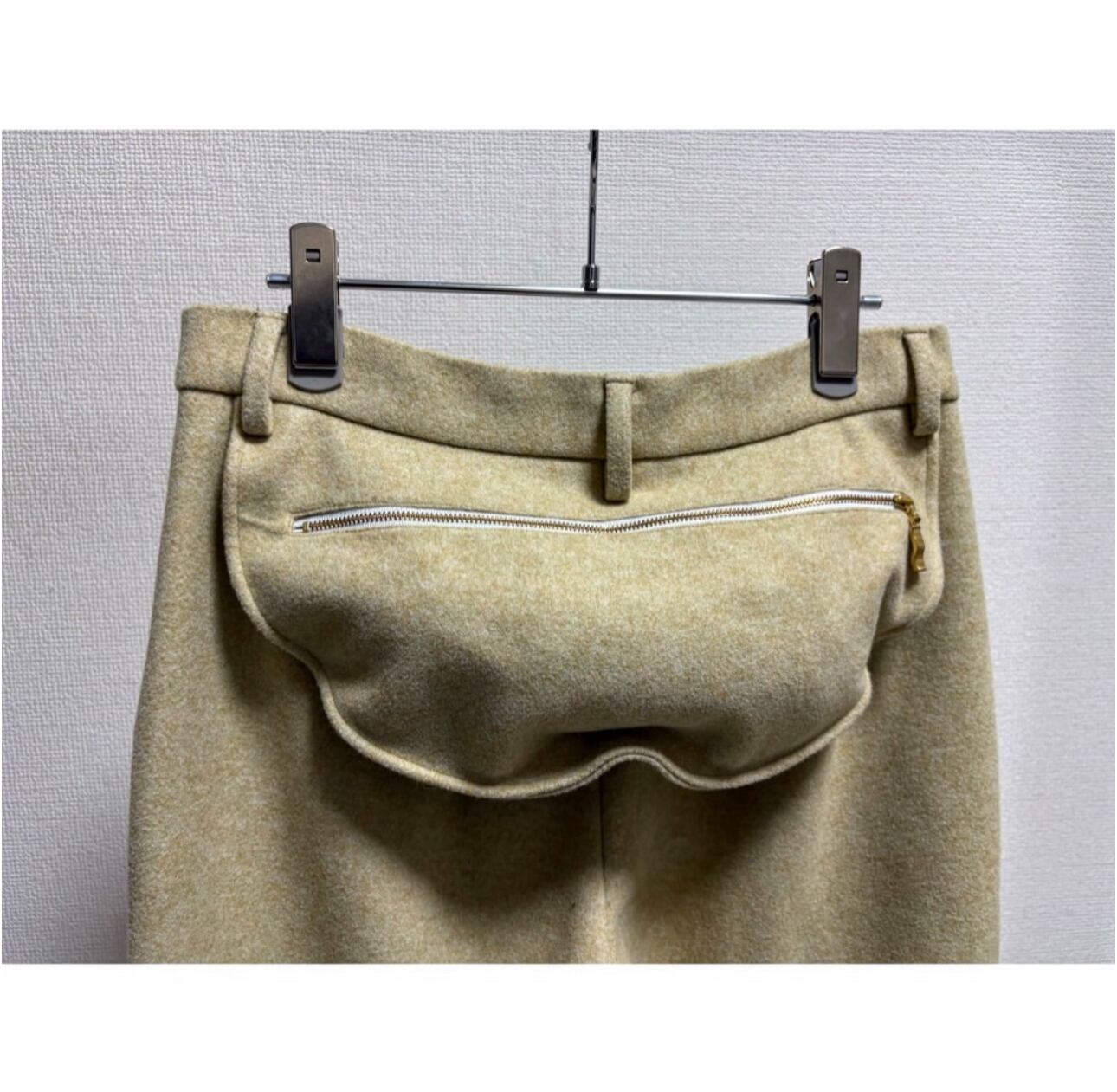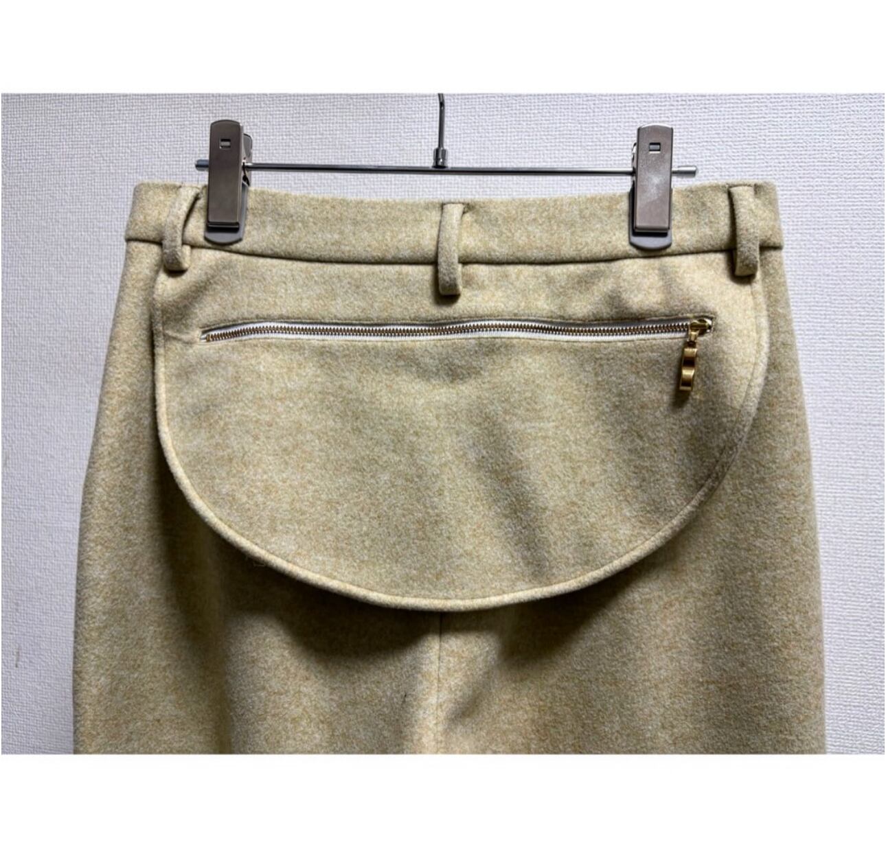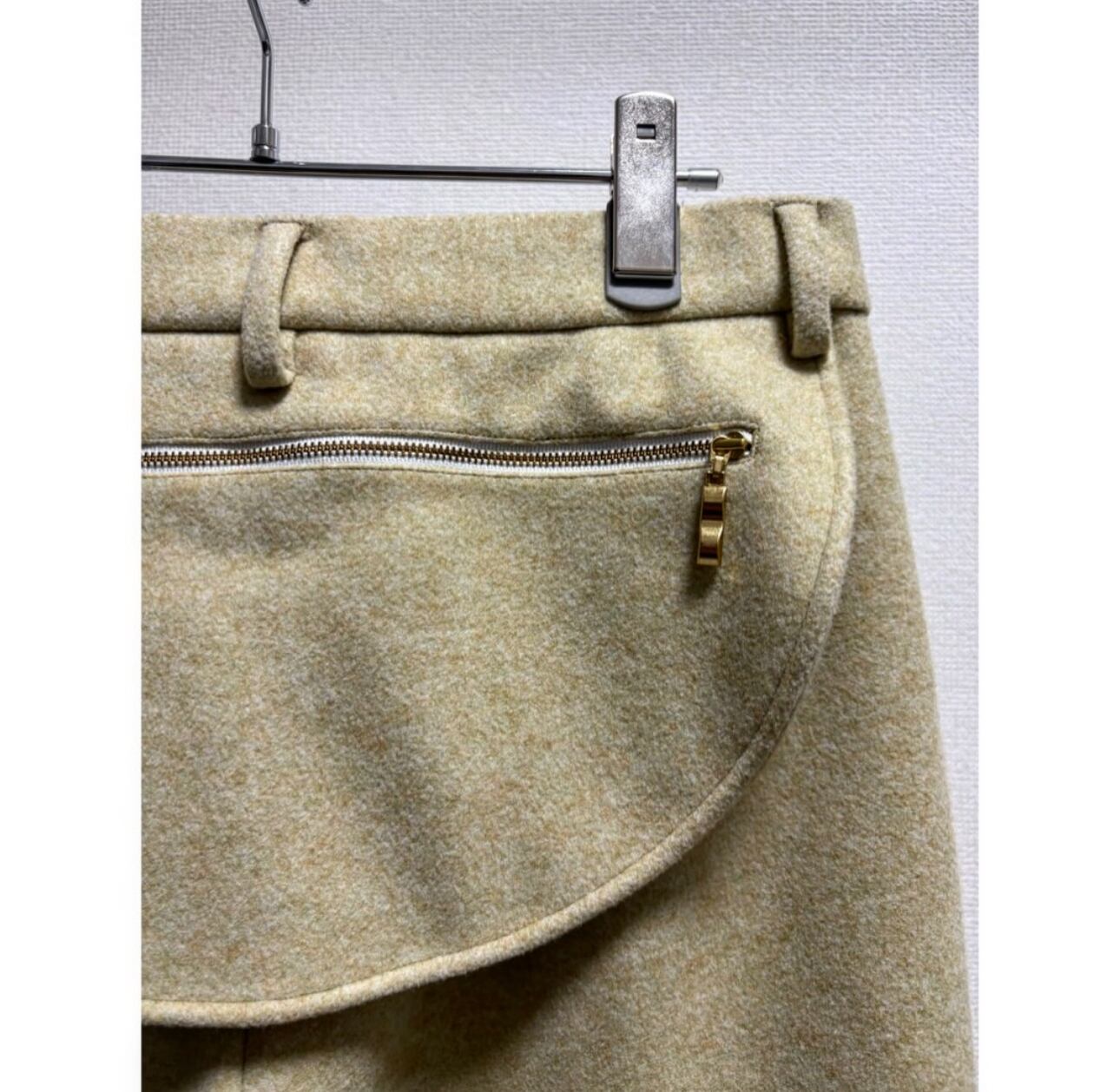 大きなゴールドジップのバッグポケット 荷物が少ない人はここだけ使って、バッグは不要ですね 近年、短丈が流行っているので主張しやすいのも嬉しいですね