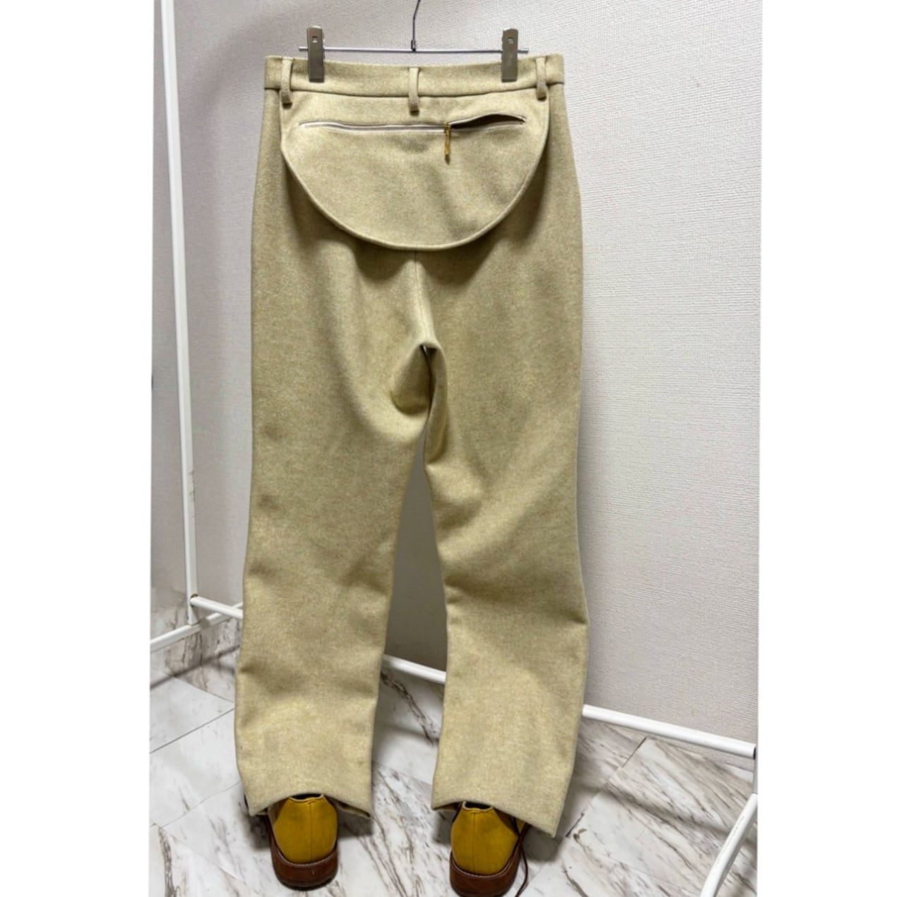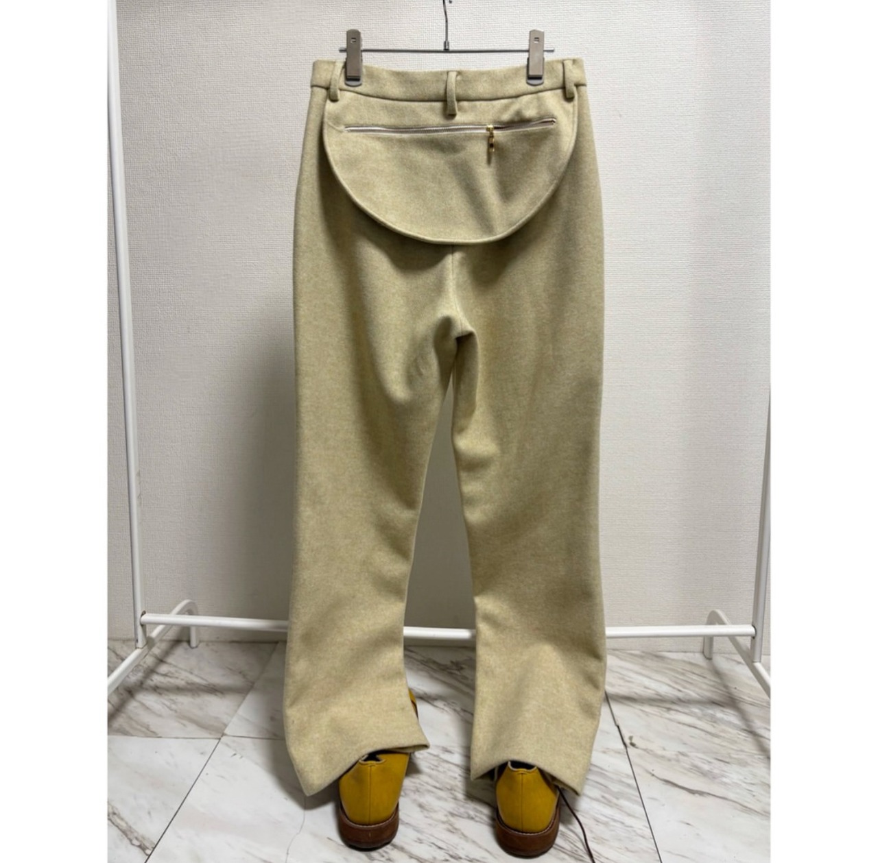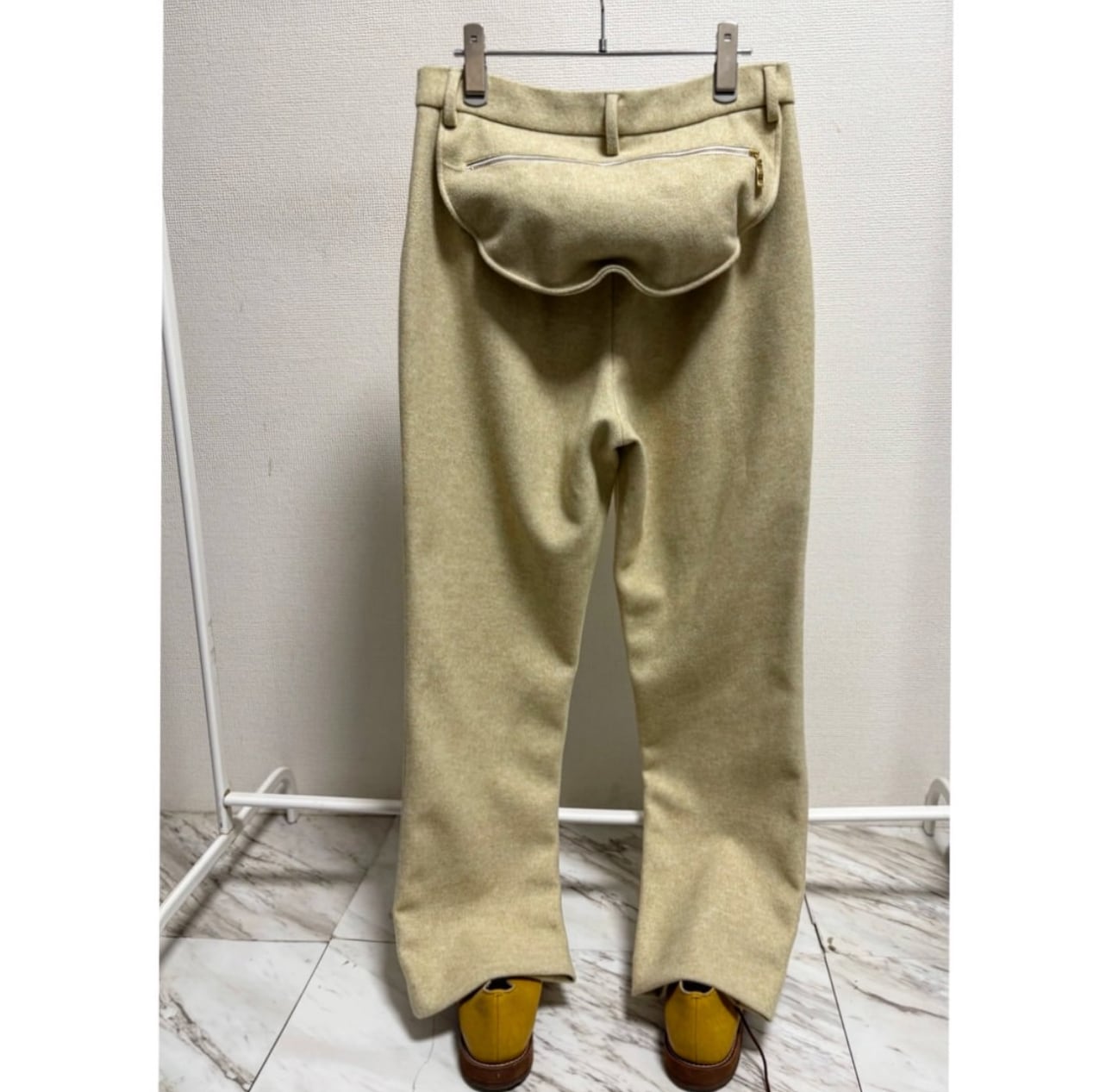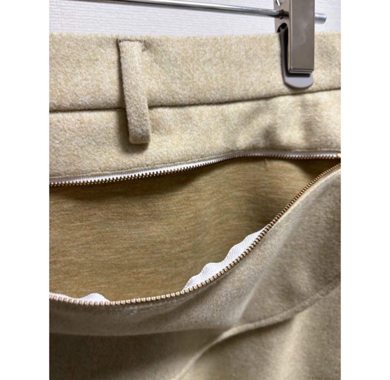 大きなゴールドジップのバッグポケット 荷物が少ない人はここだけ使って、バッグは不要ですね 近年、短丈が流行っているので主張しやすいのも嬉しいですね