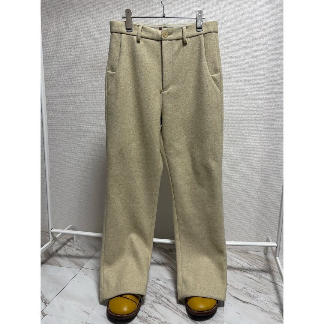 イエローのウールボンディング、圧縮ウールの様な素材感ですがウールではありません 少しジャージ感もあるので、アクリル、レーヨン、ポリかと よく見ると濃いめのイエロー、グリーンも混じっています
