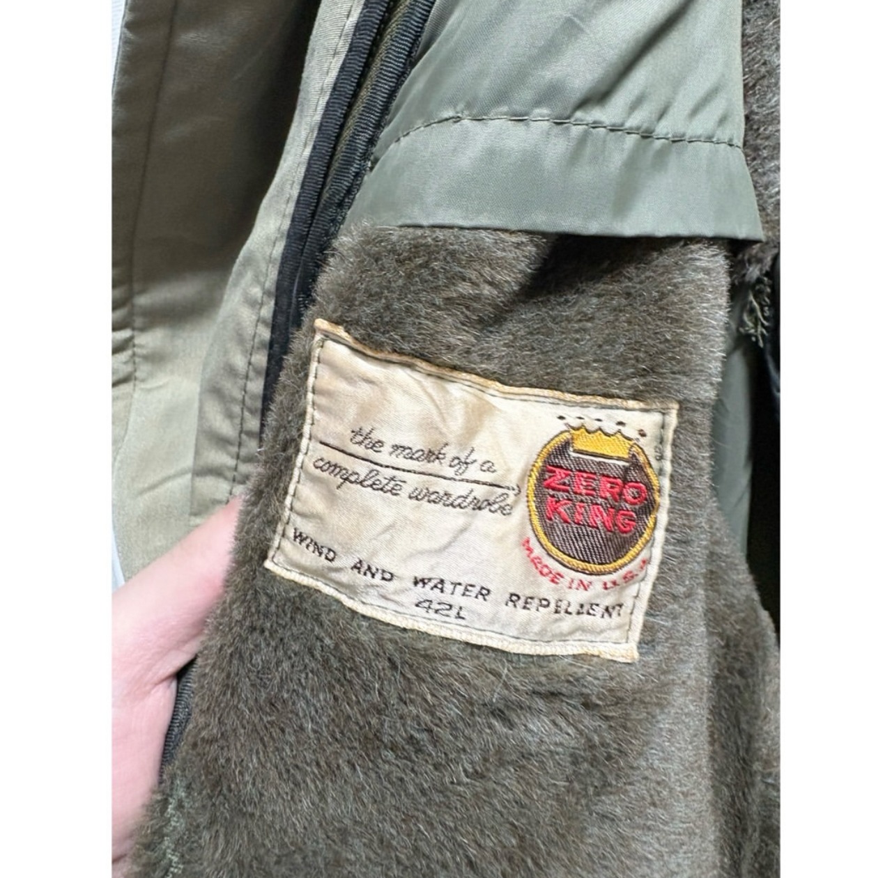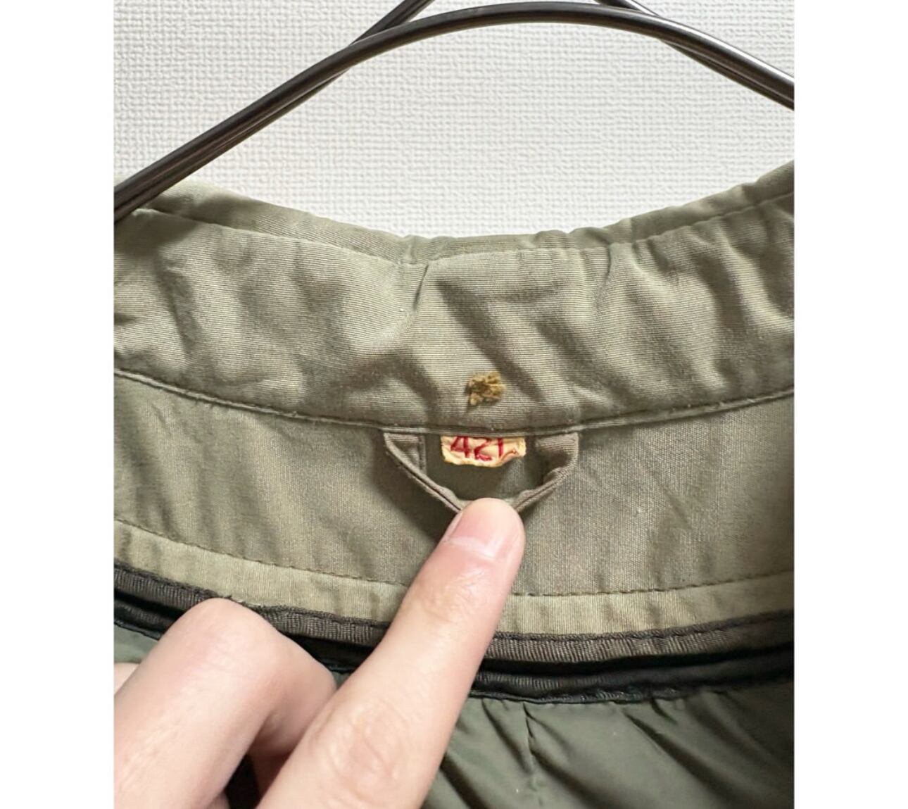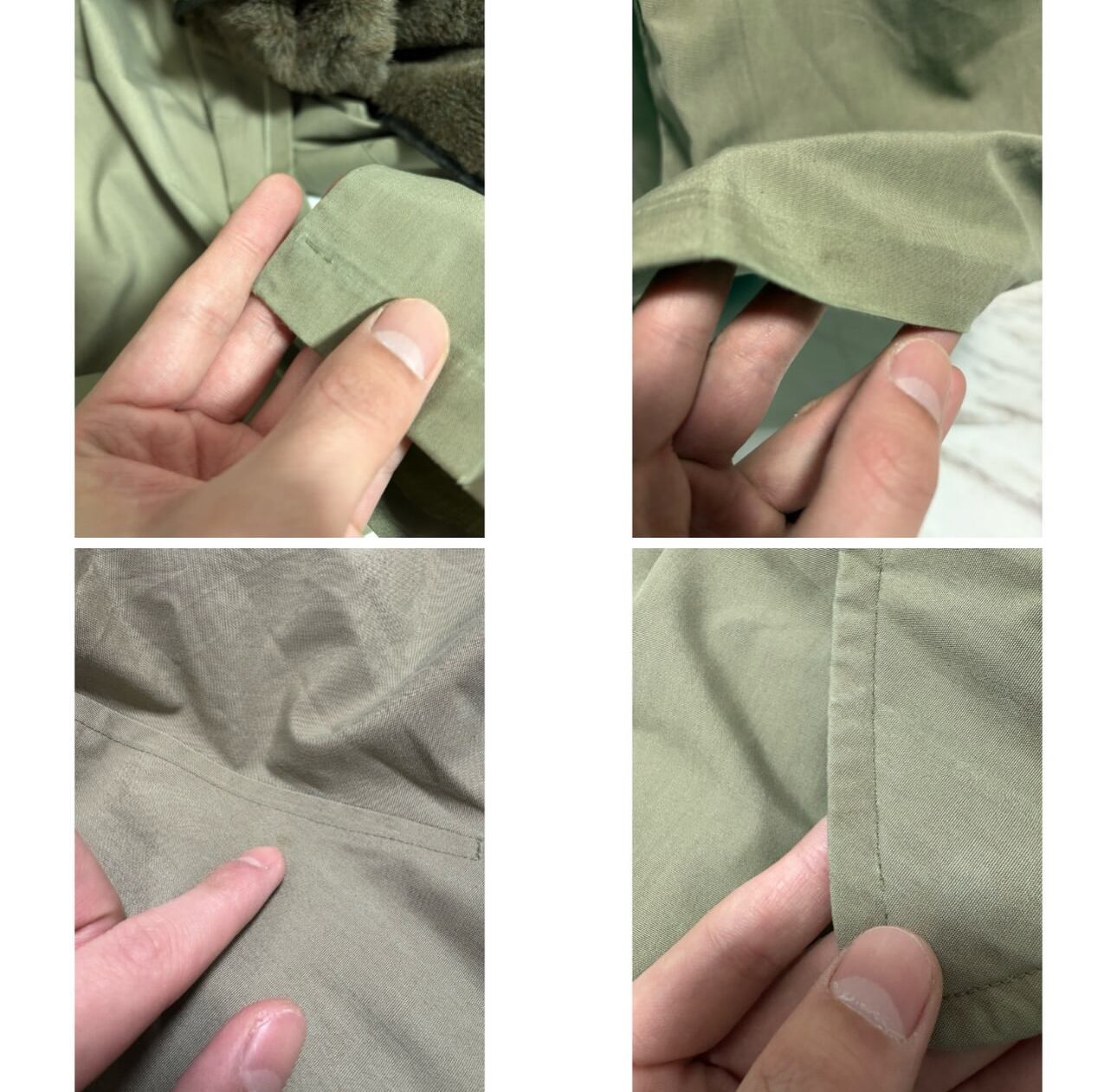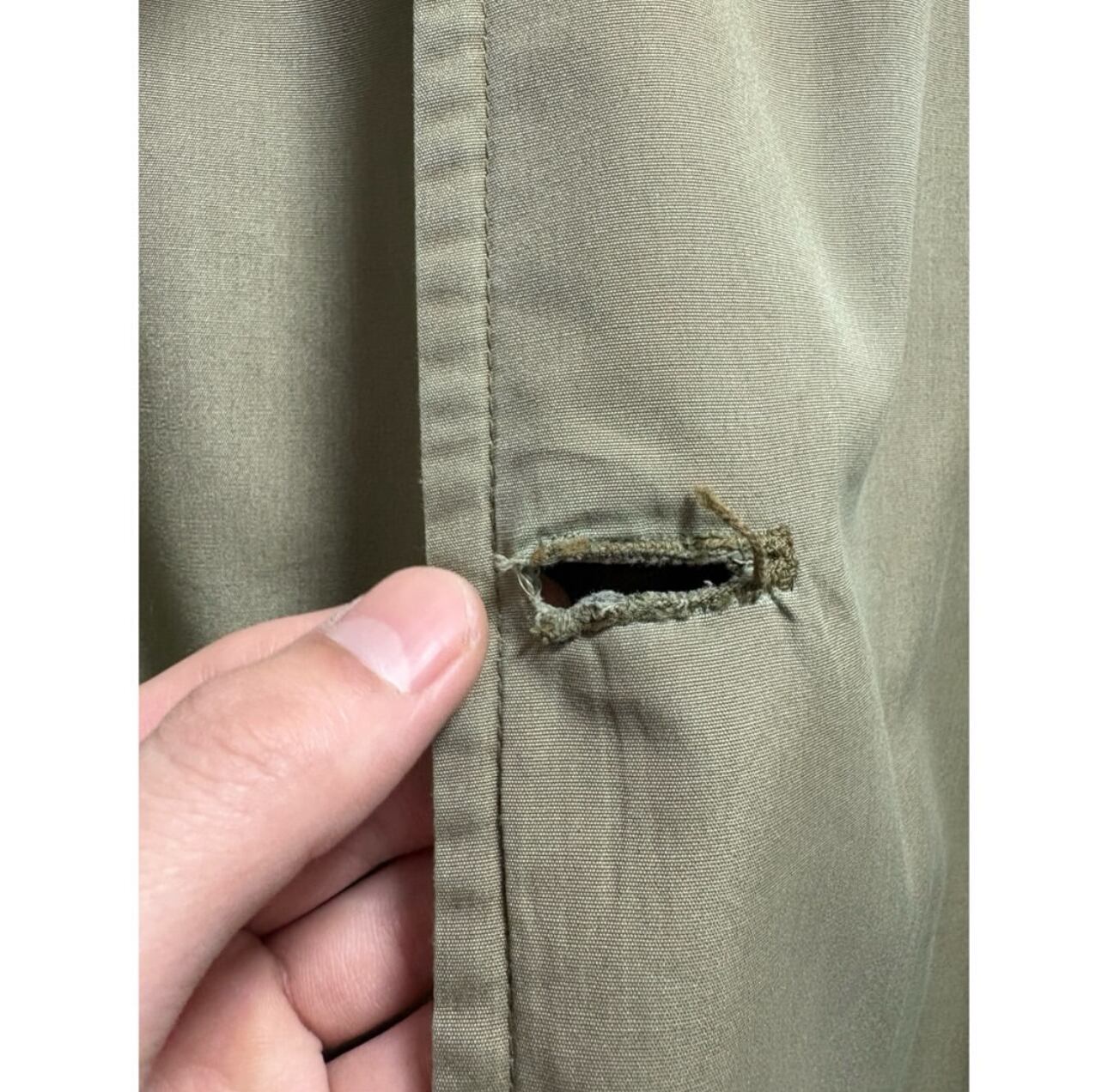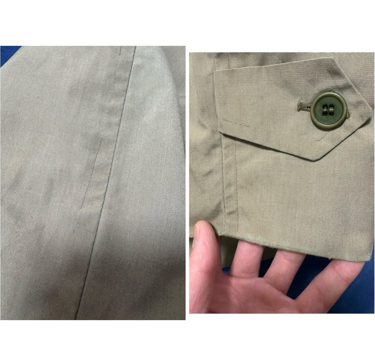アームシーム、襟裏、裾、に少し茶ばみ その他茶ばみ部分はありますが、そこまで気になる様なダメージ汚れはありません 袖先少しだけ擦れ インナーのチャック部分の再度裾にダメージがあるのでクリップで留めてあります