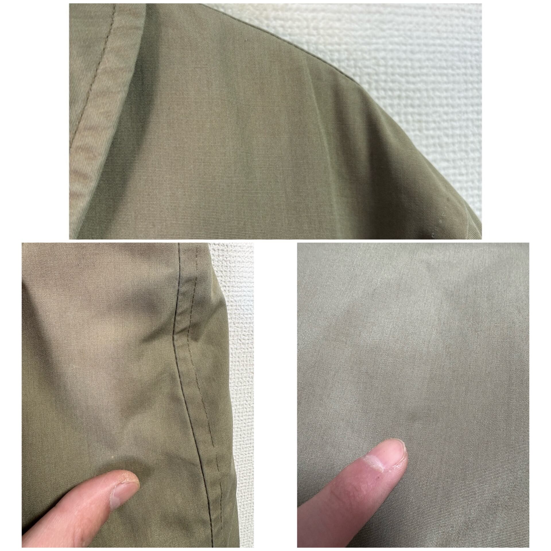 アームシーム、襟裏、裾、肩、に少し茶ばみ その他茶ばみ部分はありますが、そこまで気になる様なダメージ汚れはありません 袖先少しだけ擦れ その他シミ インナーのチャック部分の再度裾にダメージがあるのでクリップで留めてあります