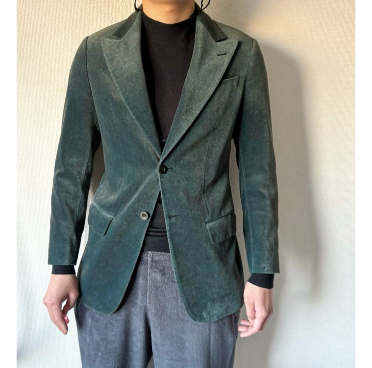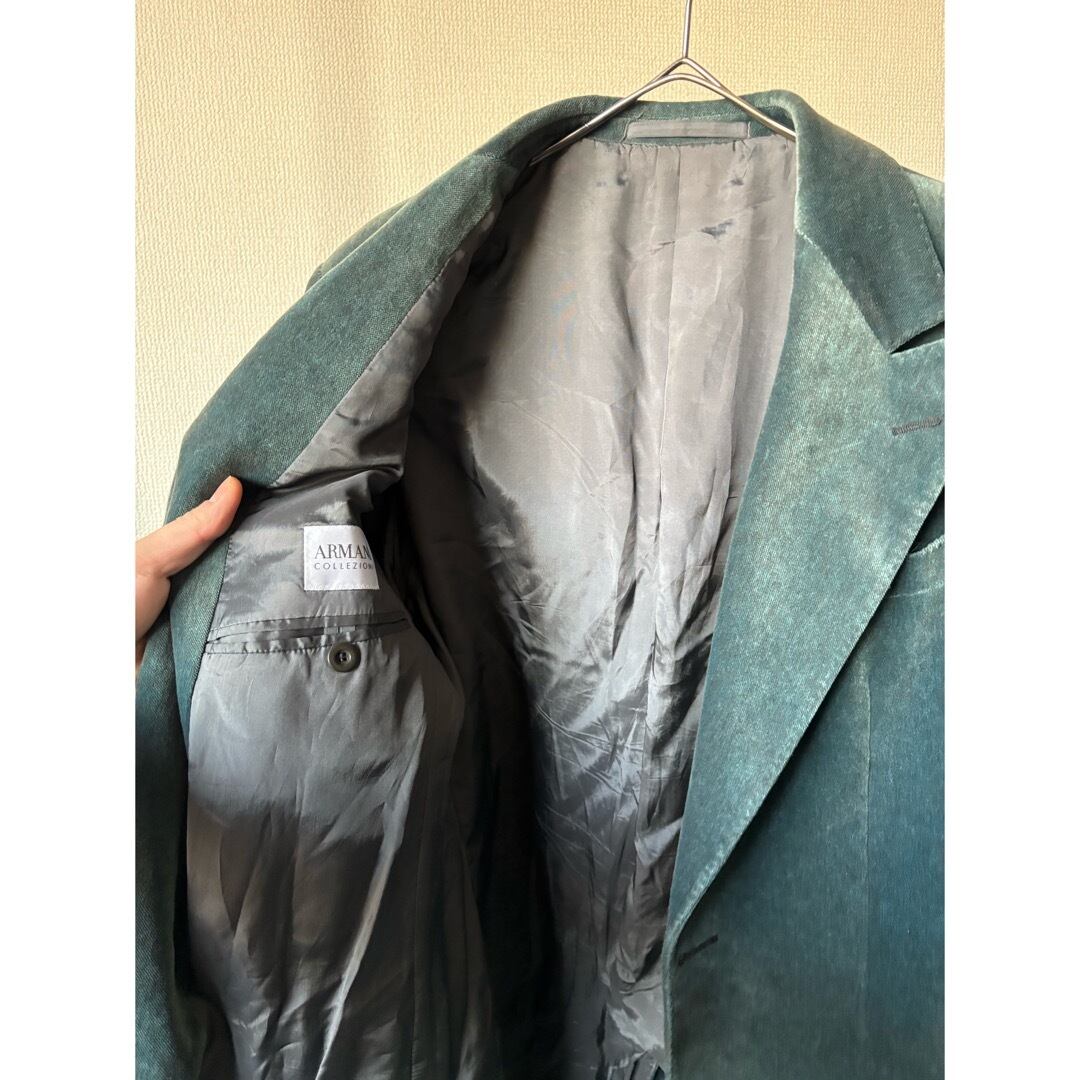 00s made in turkey armani collezioni moss green & brown velor tailored jacket "玉虫色"