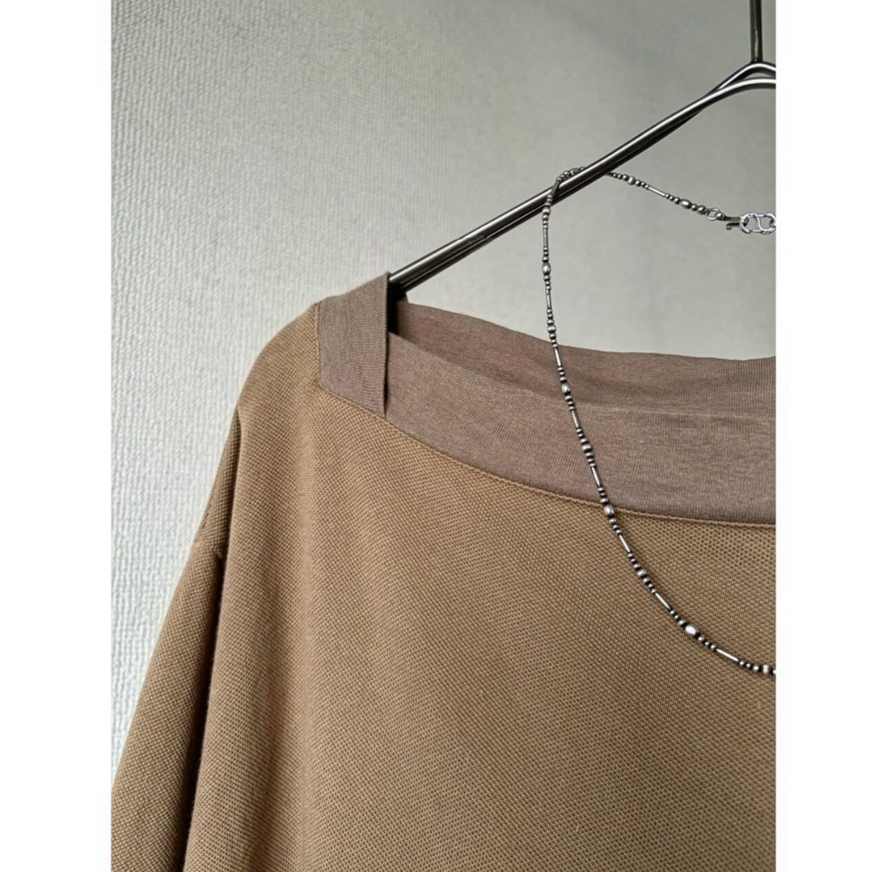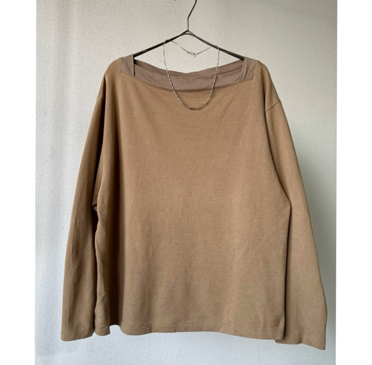 ボートネックならぬ、スクエアネック 初見の首のカッティング ネックレスやインナーを見せられます アウターの下から覗かせても良さそう