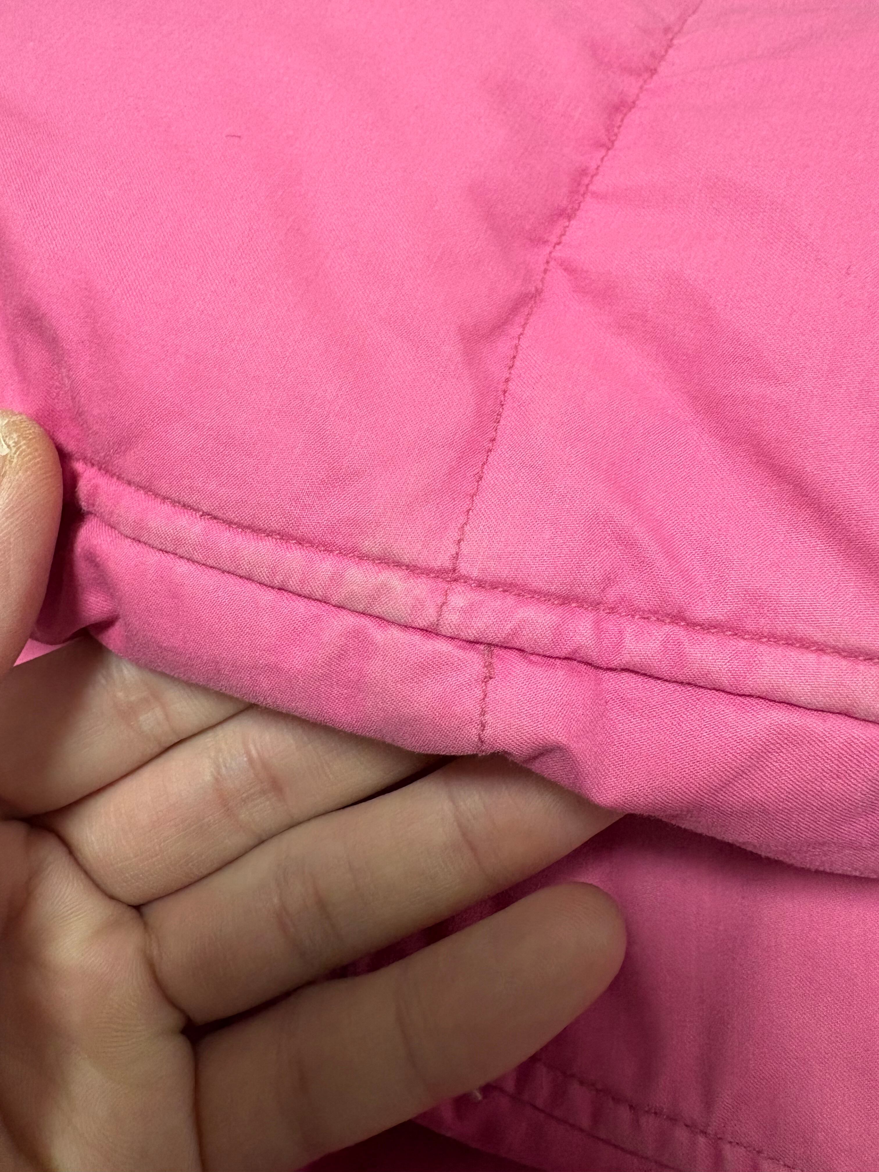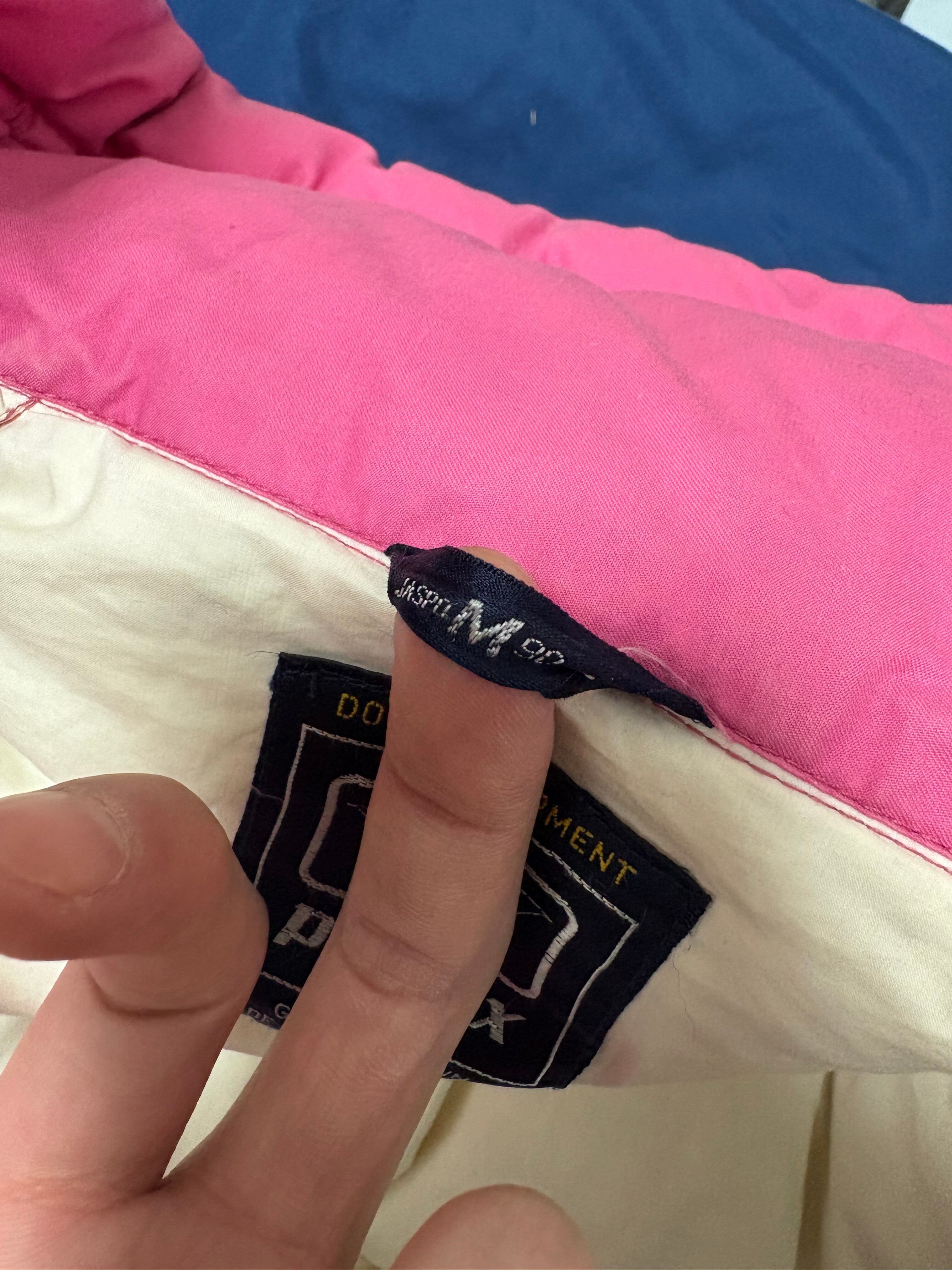 ボディーは目の覚める様なヴィヴィッドピンクのコットンポリ ダウン80%中綿20%のボリューミーなダウン