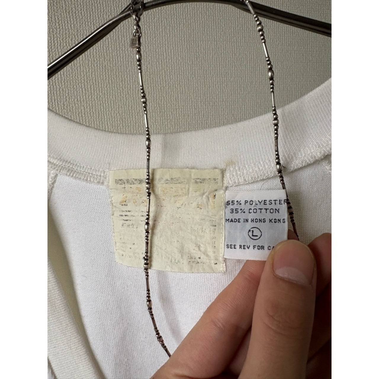 多少の薄いシミはありますが、この年代としては綺麗めな個体です 若干ポリコットン特有の摩耗感 タグの角が一つ外れています