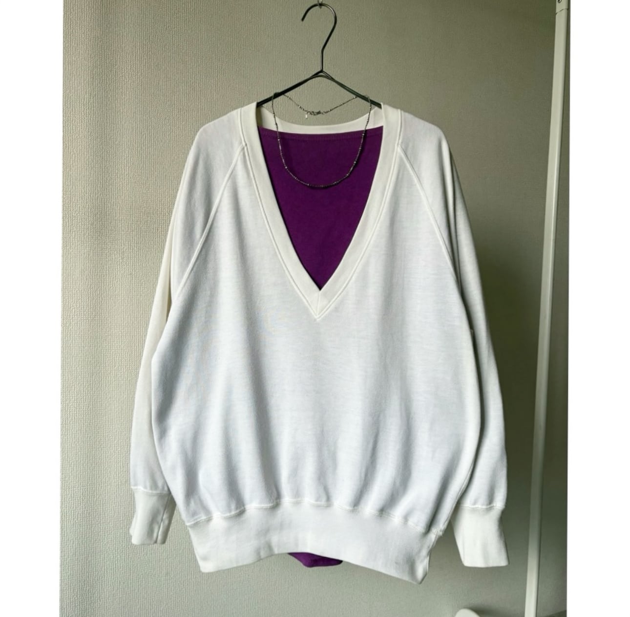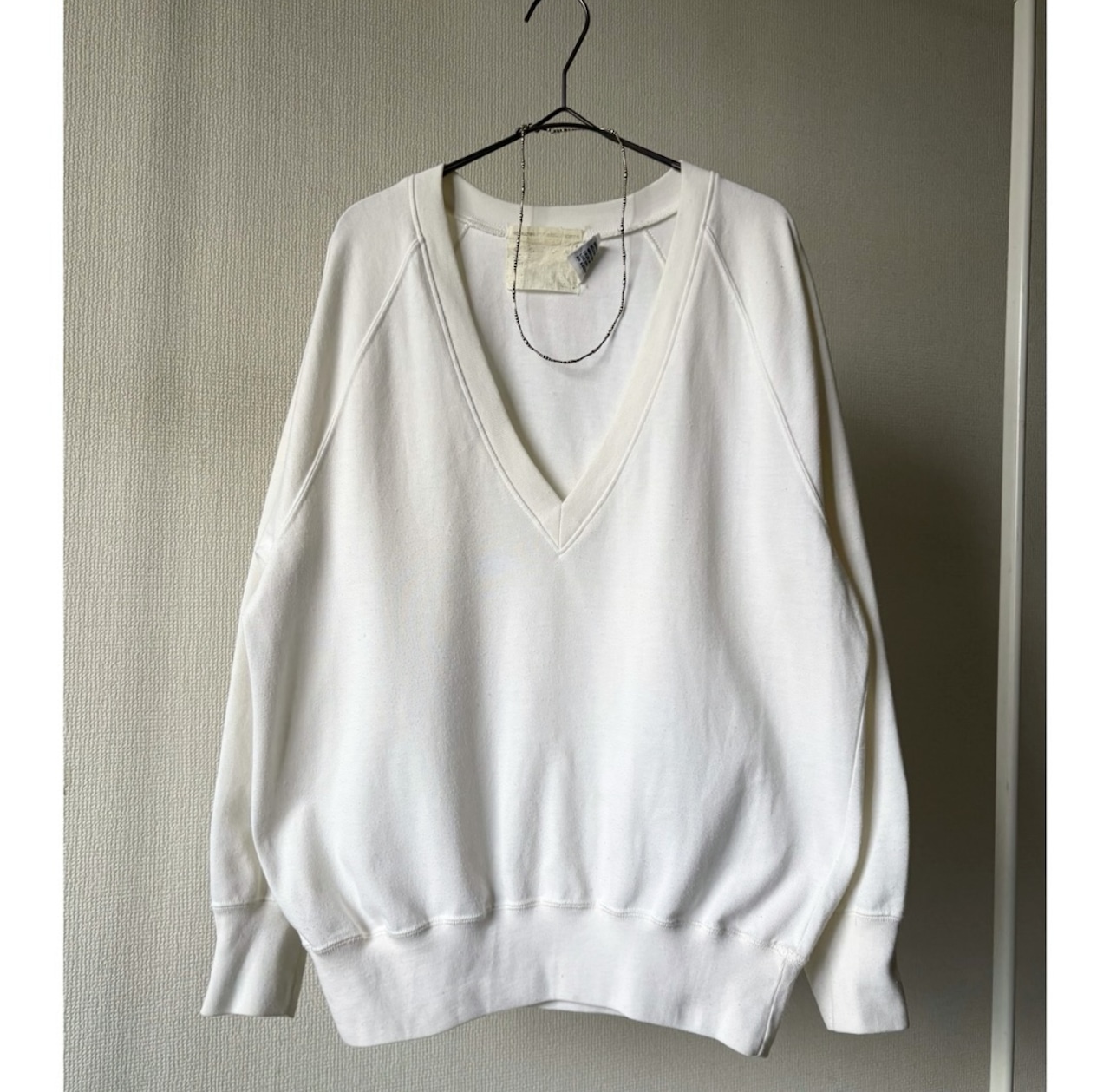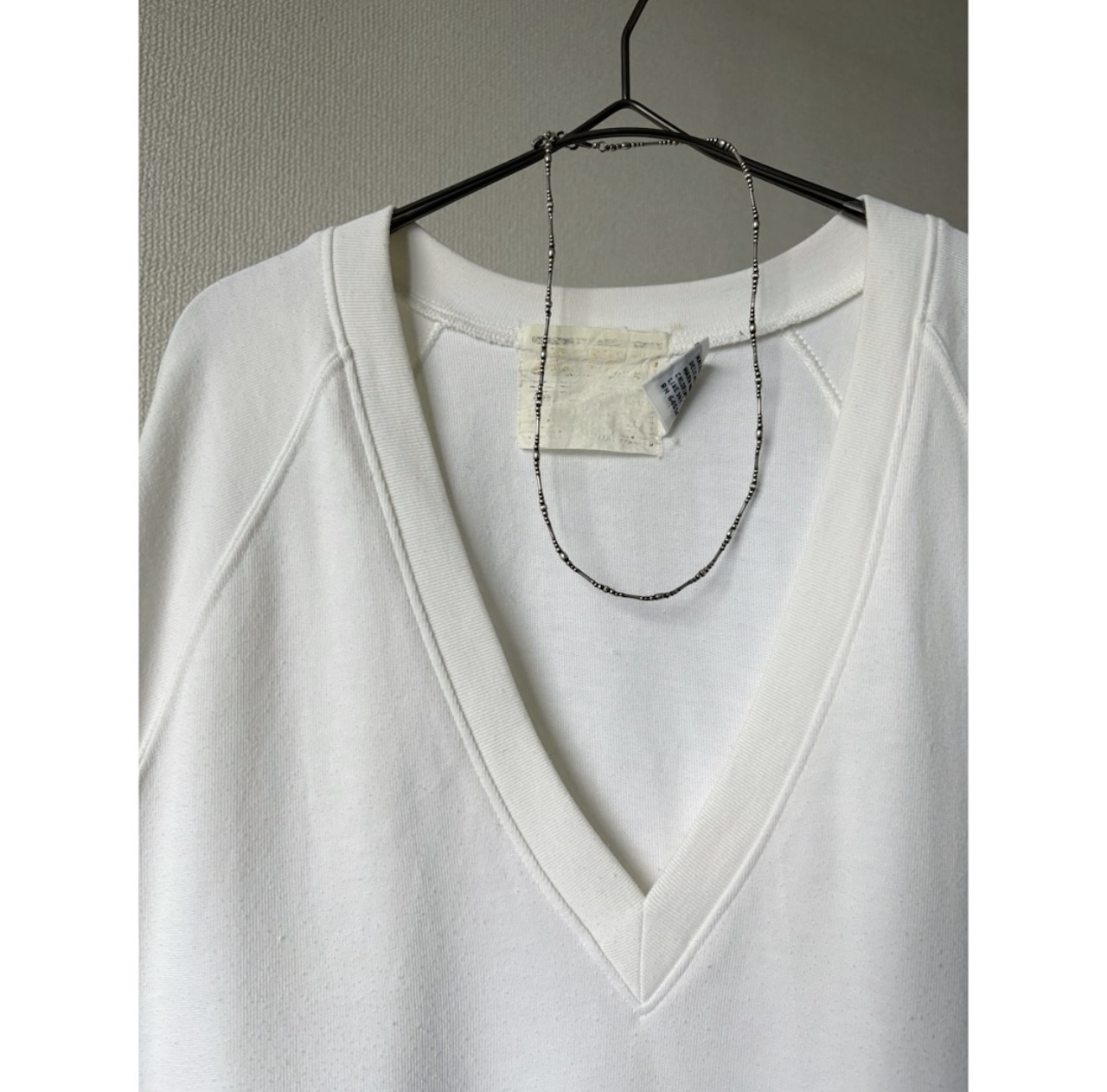 70s 〜 80s poly cotton white deep V-neck sweat