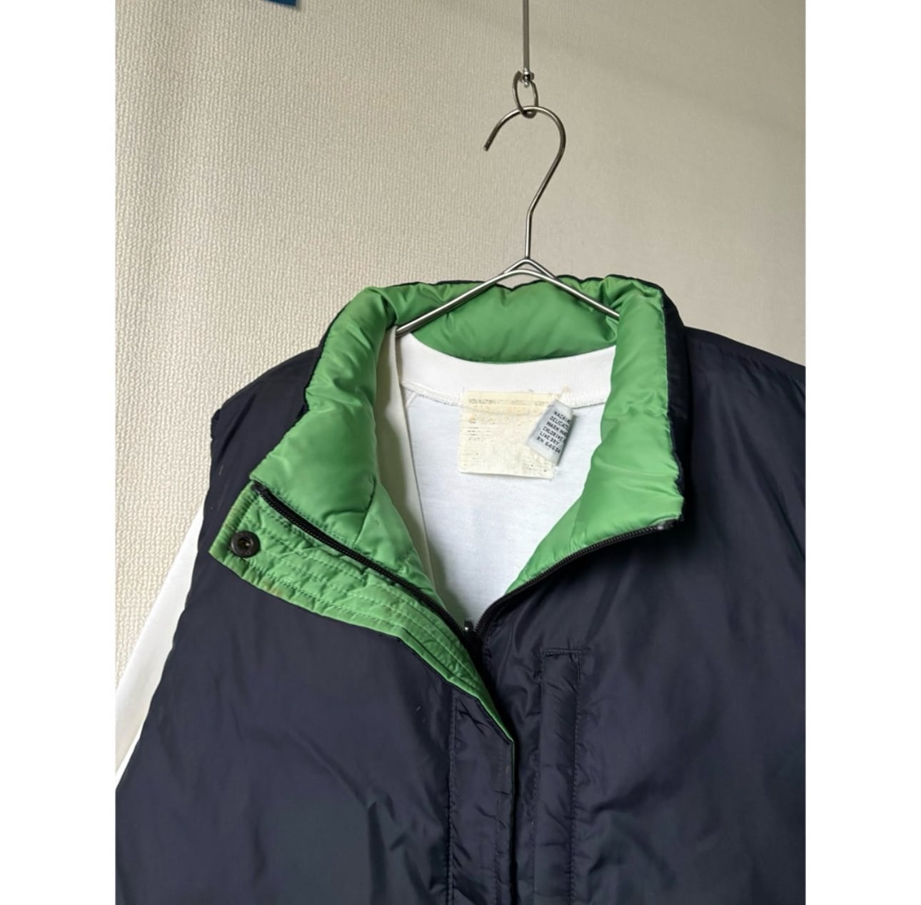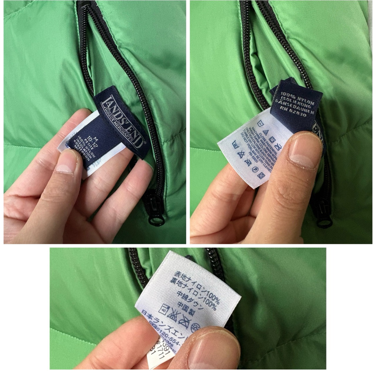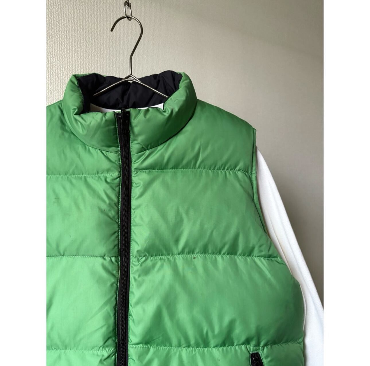 00s land's end light green & black down vest "reversible"