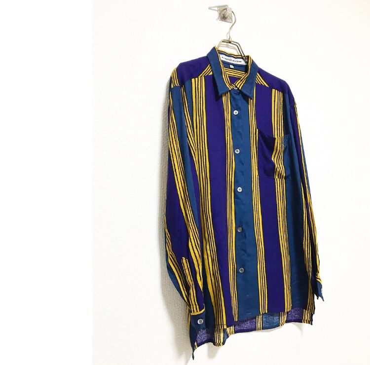 トロみのあるレーヨン素材のストライプシャツ 深めのスリットが入ってます