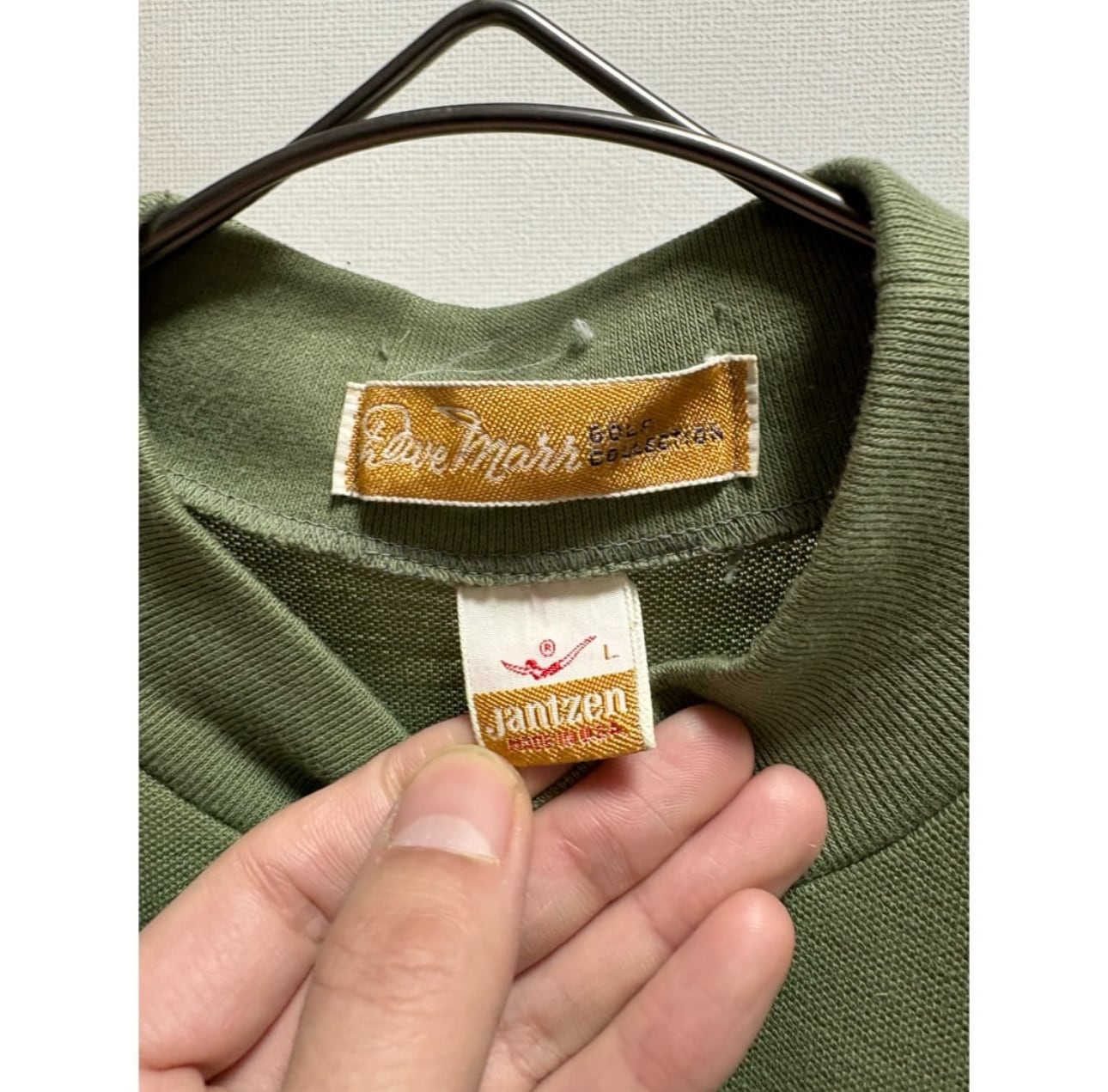 vintage 70s jantzen high neck light olive green s/s cut-and-sewn