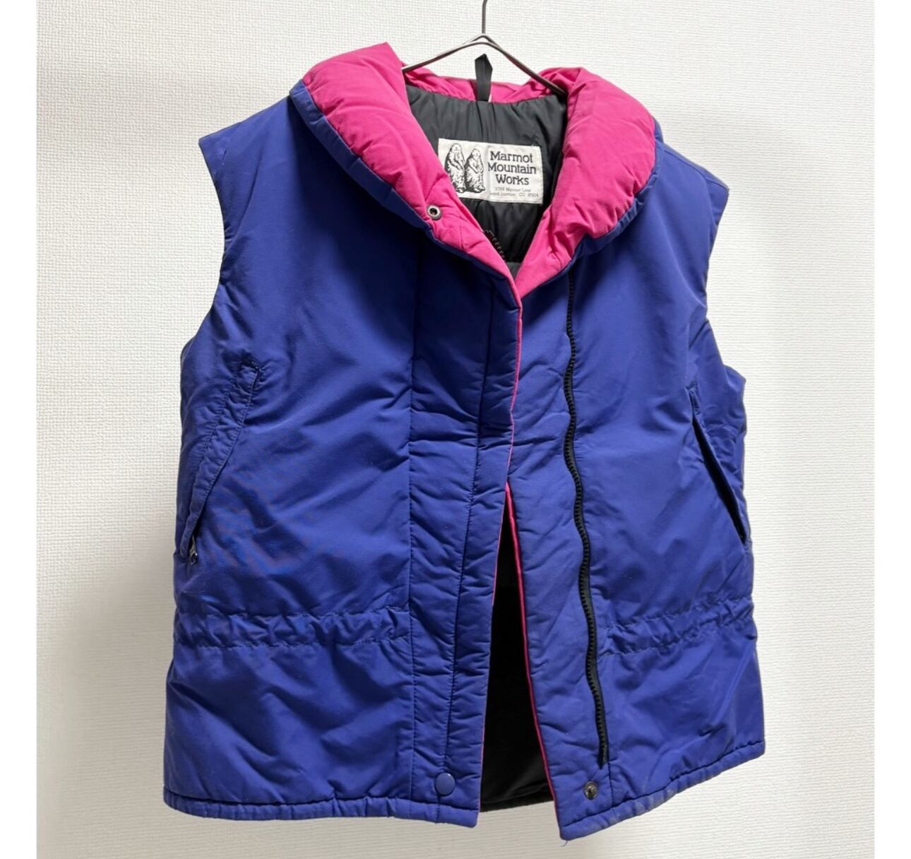 80s marmot mountain works purple × vivid pink goose down vest