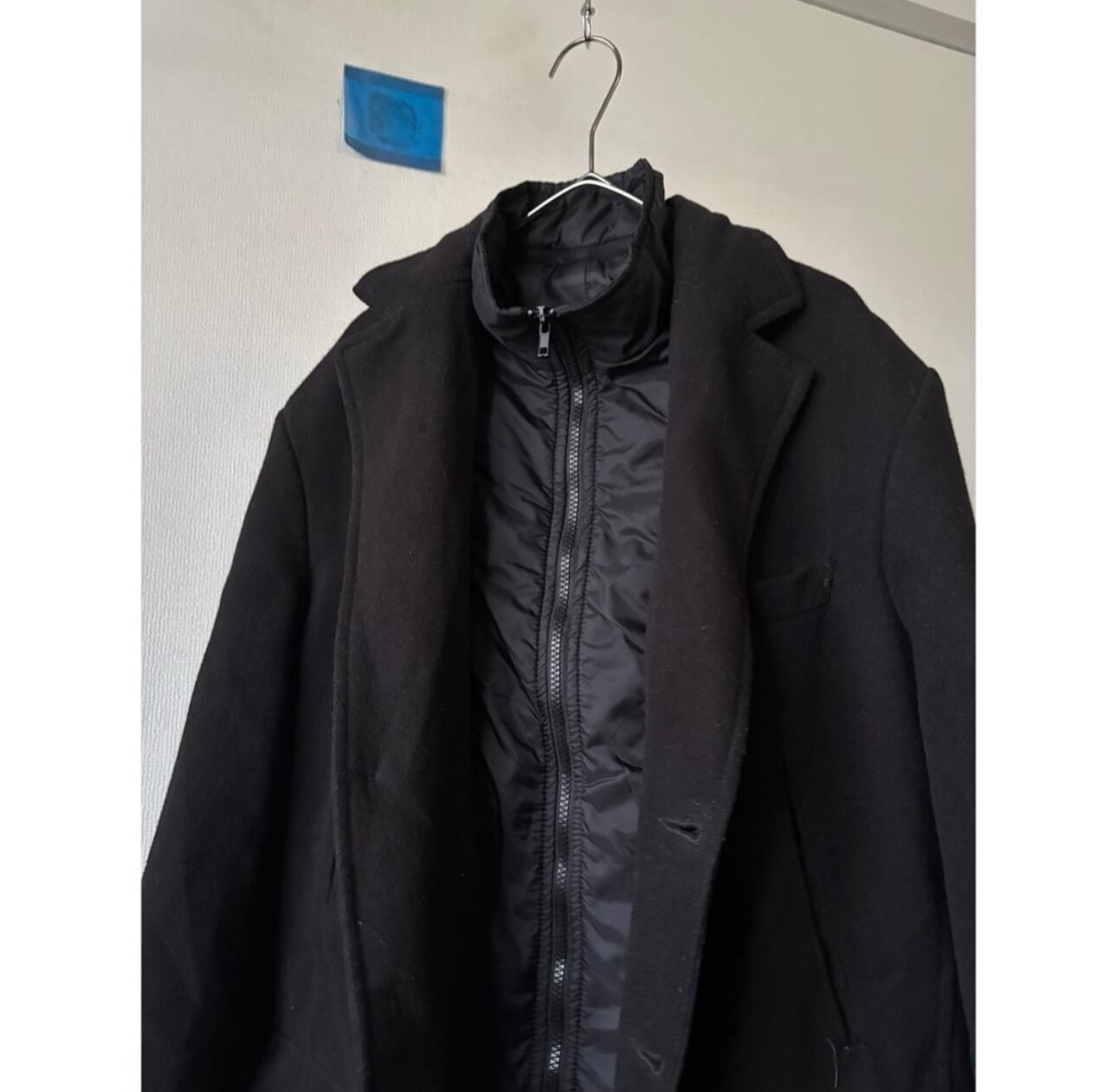 90s poly rayon black chester coat with padding vest