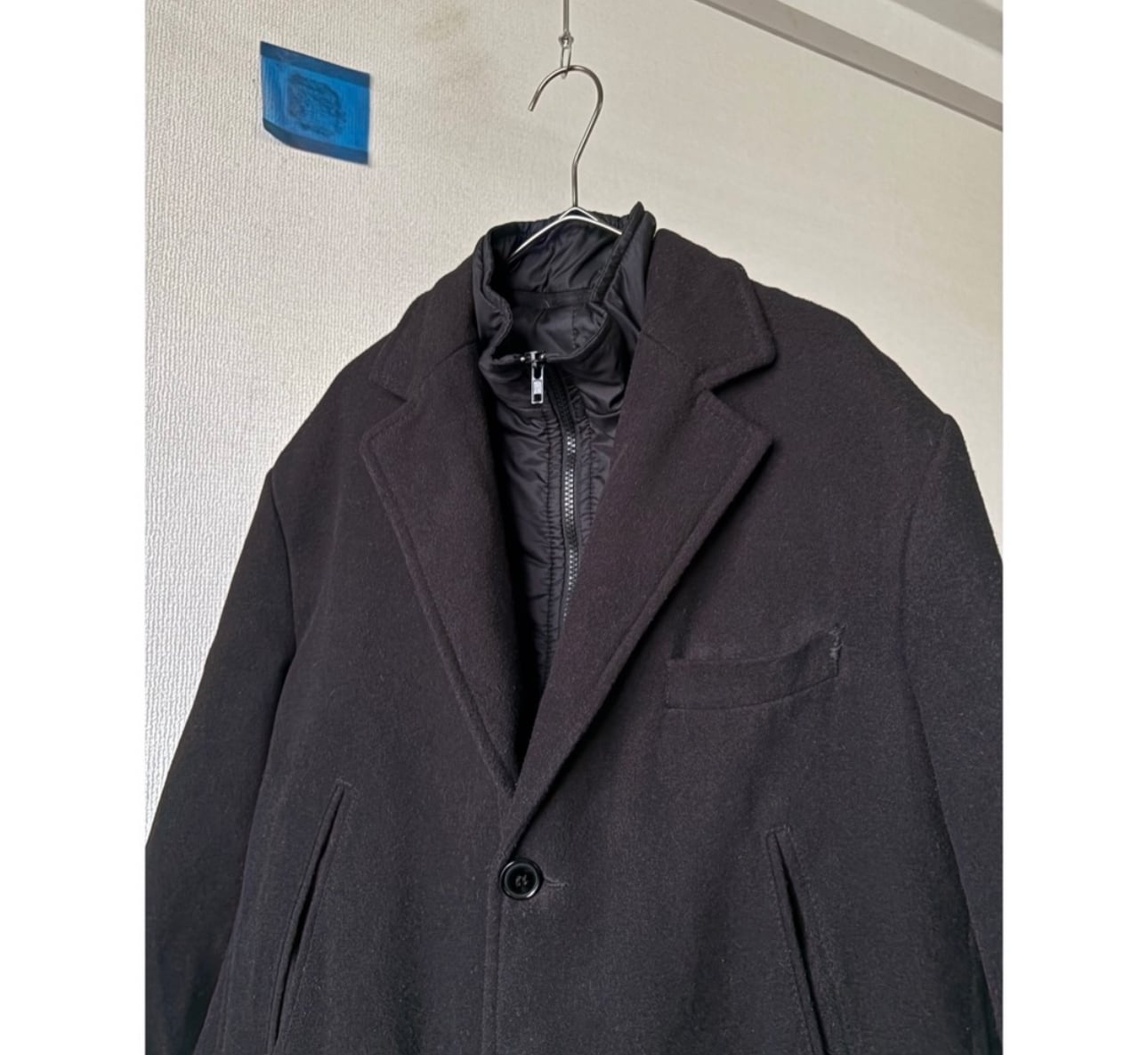 胸ポケットサイドにリペア黒のウールなので少し塵が付いています、多少の摩耗感があります
