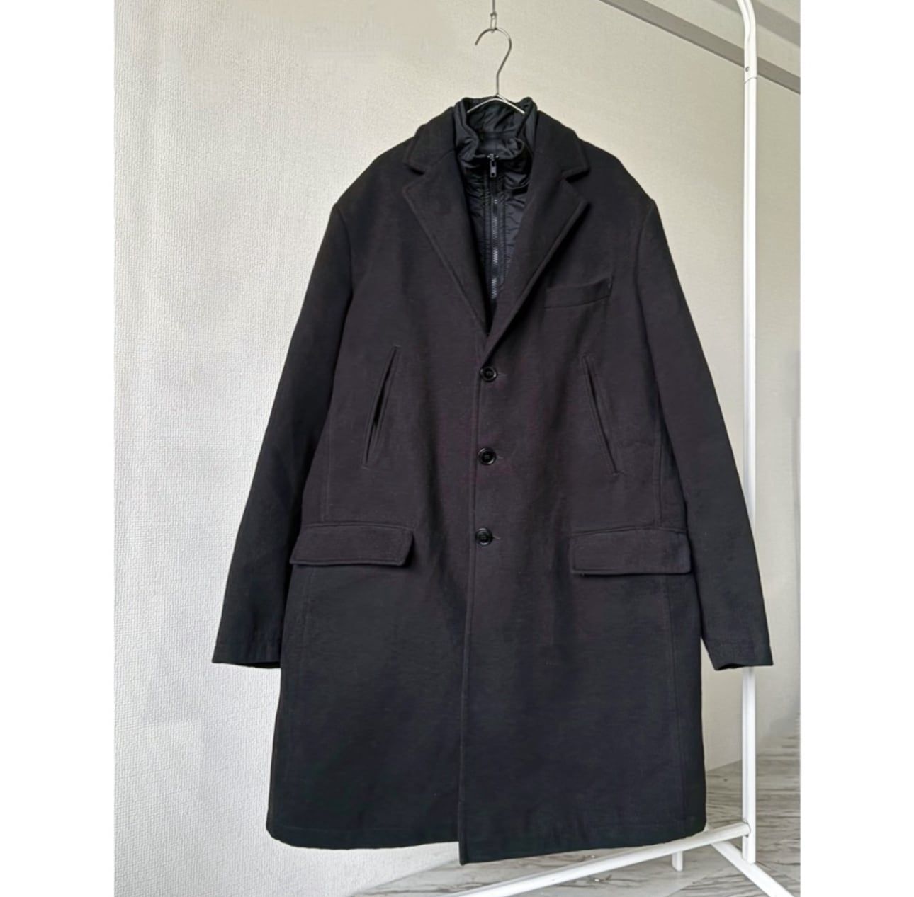 ハイネックパデットブルゾンドッキングのチェスターコート クラシカルなチェスターコートとテックの異様な組み合わせ