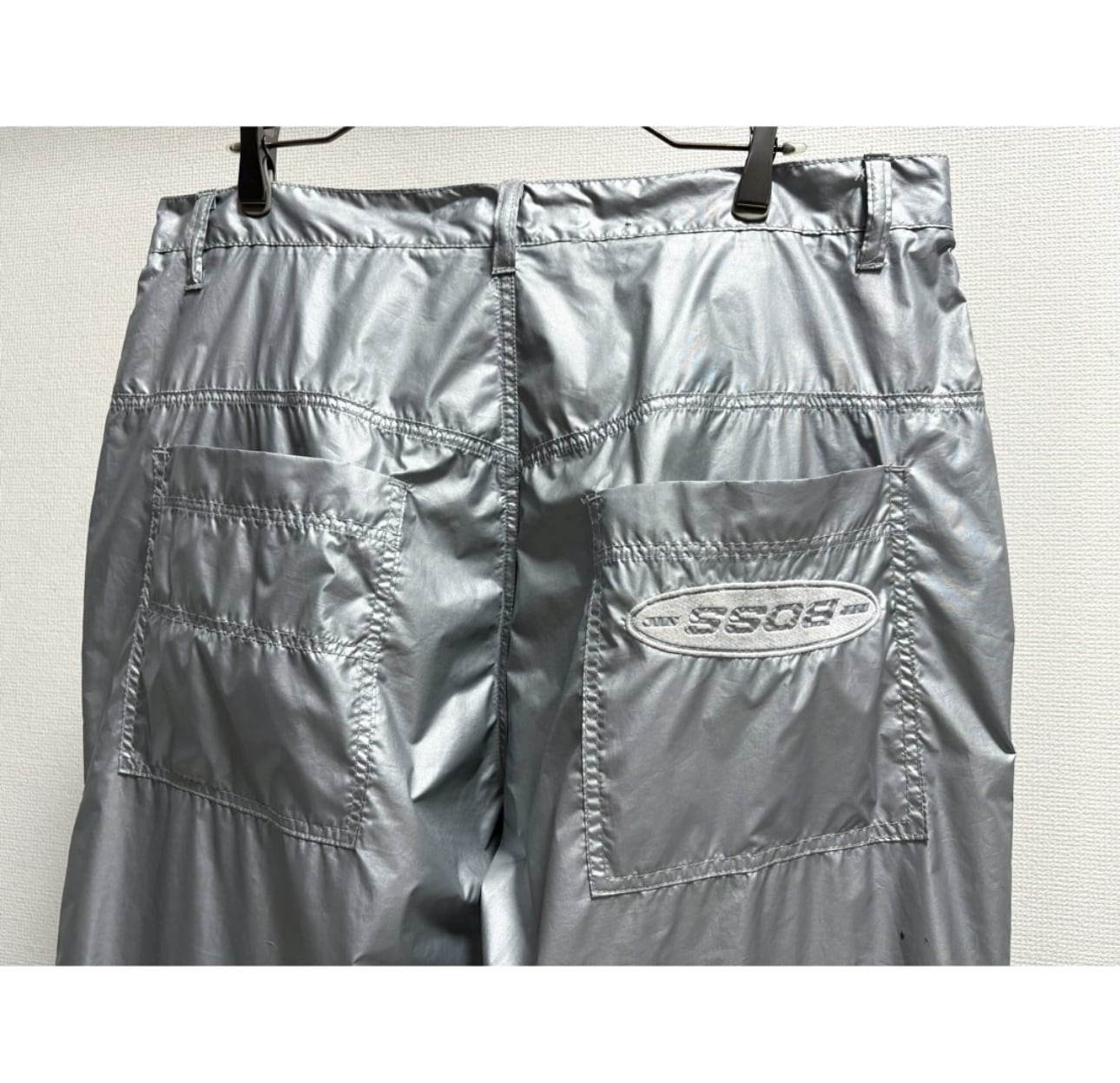 90年代特有の極太デニムをナイロン素材で表現 米軍のファイヤーマンパンツを彷彿とさせるメタリックシルバー