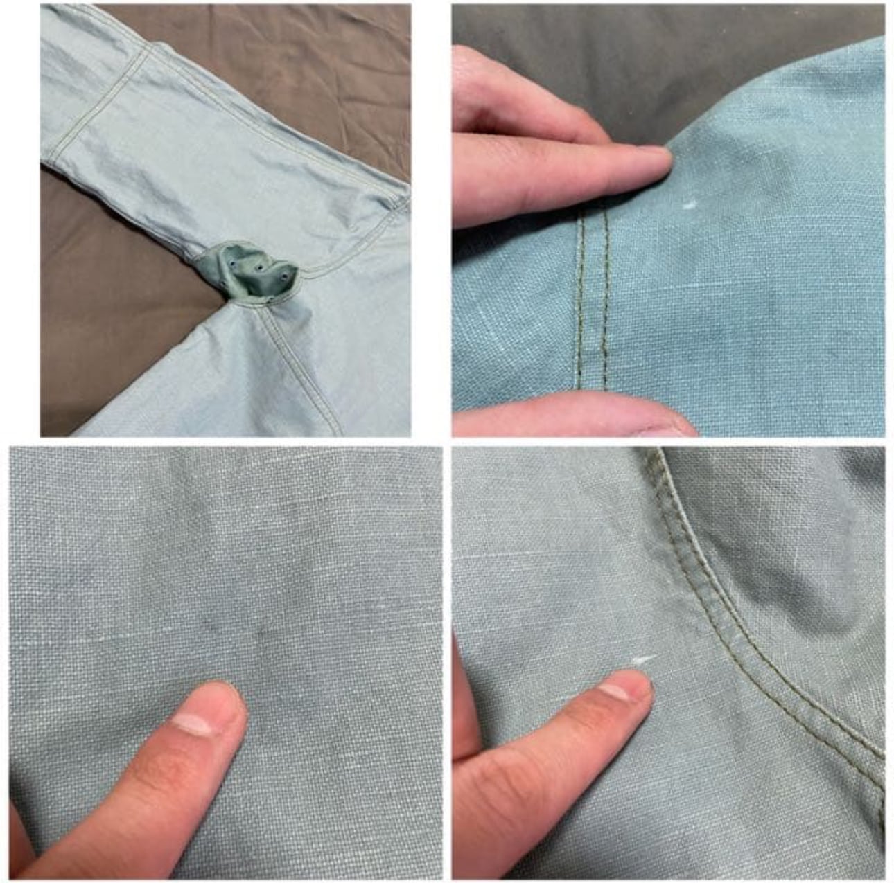ミントグリーンとセージグリーン の間の様な絶妙な色味 オリーブグリーンのステッチが映えますね リネン × コットン の涼しげな素材感 更にそこにコーティングを掛けています