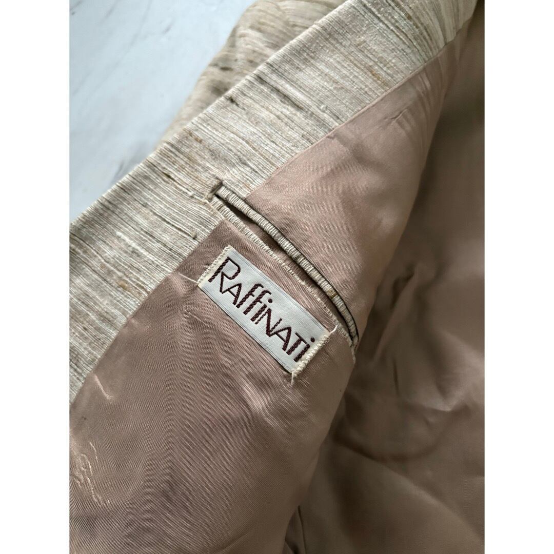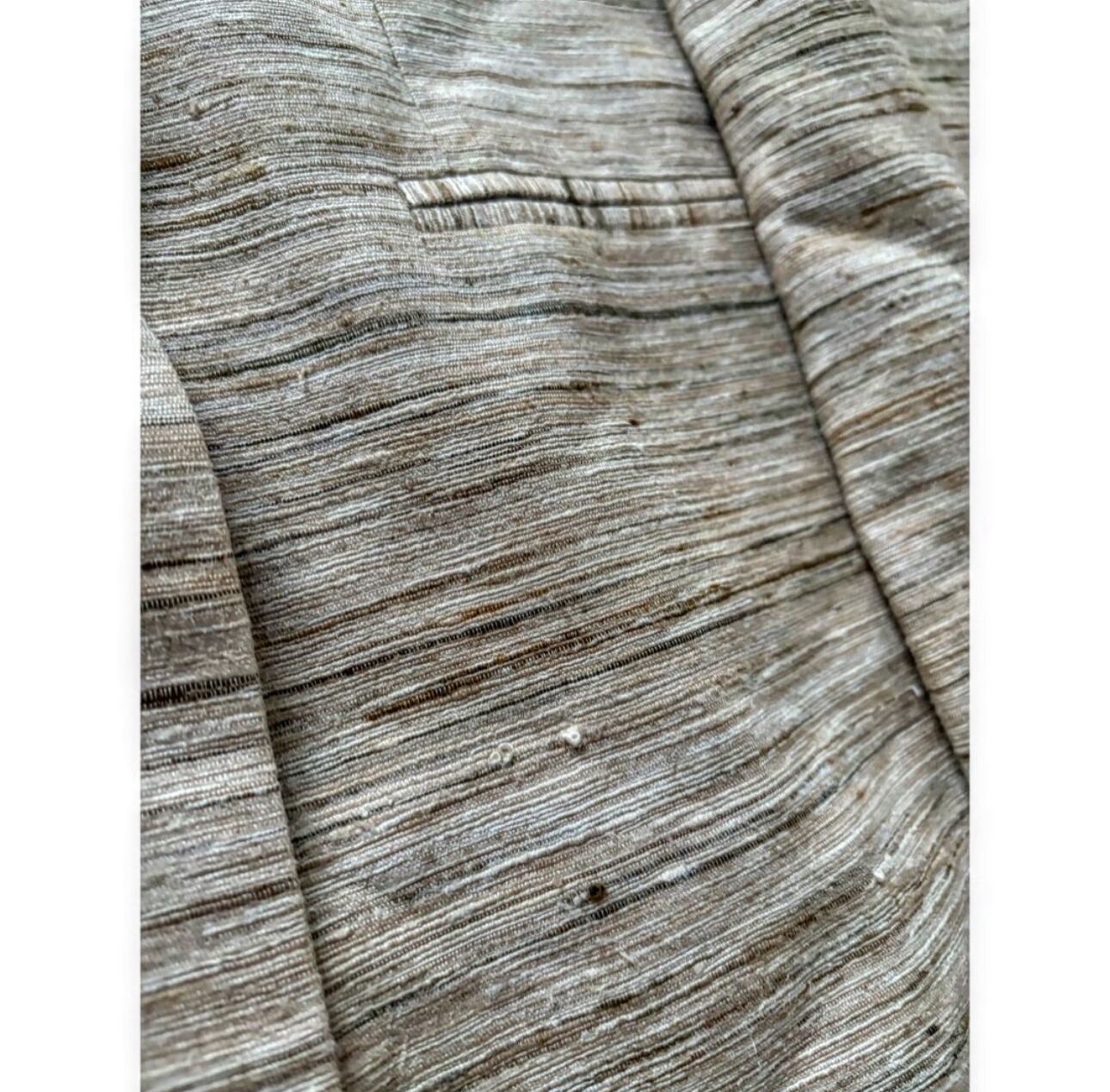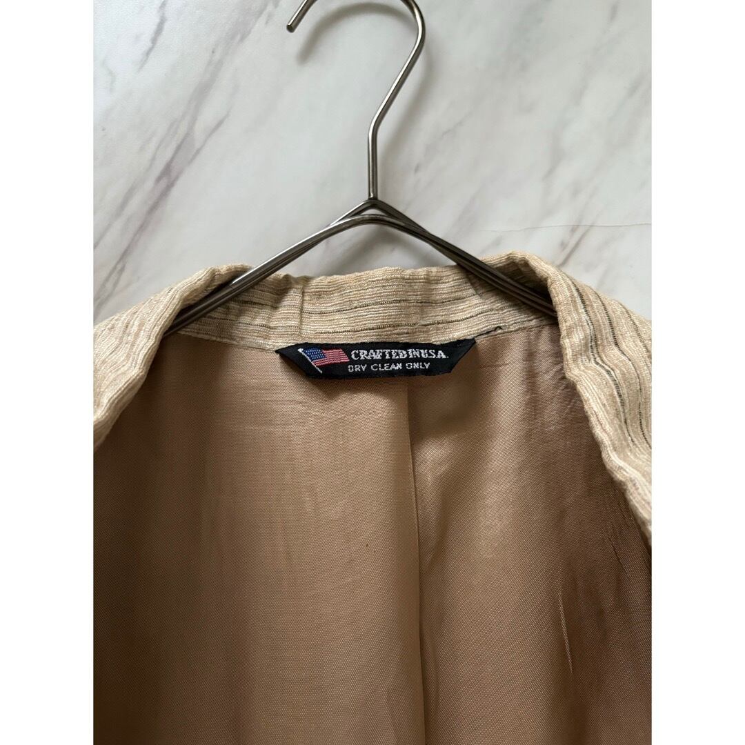 オールドテーラードにしては珍しい明るい色味 アイボリーメインで横線の筋がランダムに入った面白い生地 ブラック、ブラウン、ベージュの生地が織り込まれています