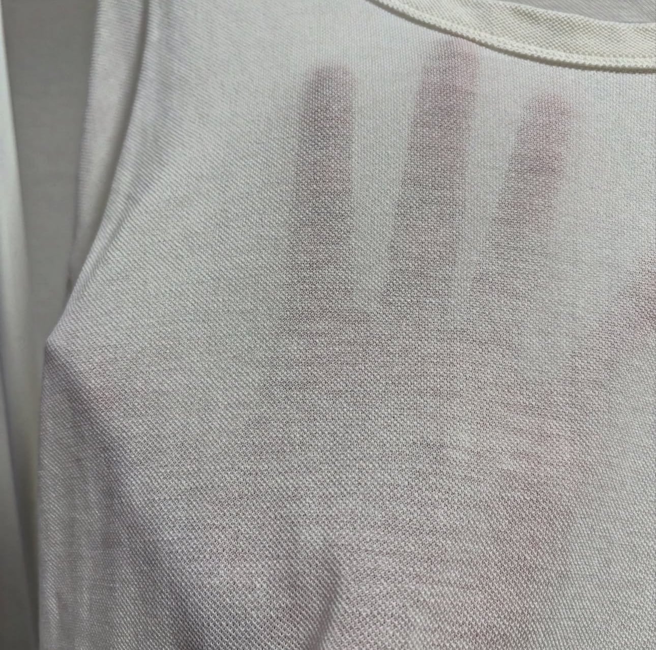 程よい透け感のシースルーインナーシャツ シャツやカーディガンの下に着る用に作られた、これ以上ないくらい涼しげな生地感 おそらくレーヨン系 ガーゼ地の様な素材