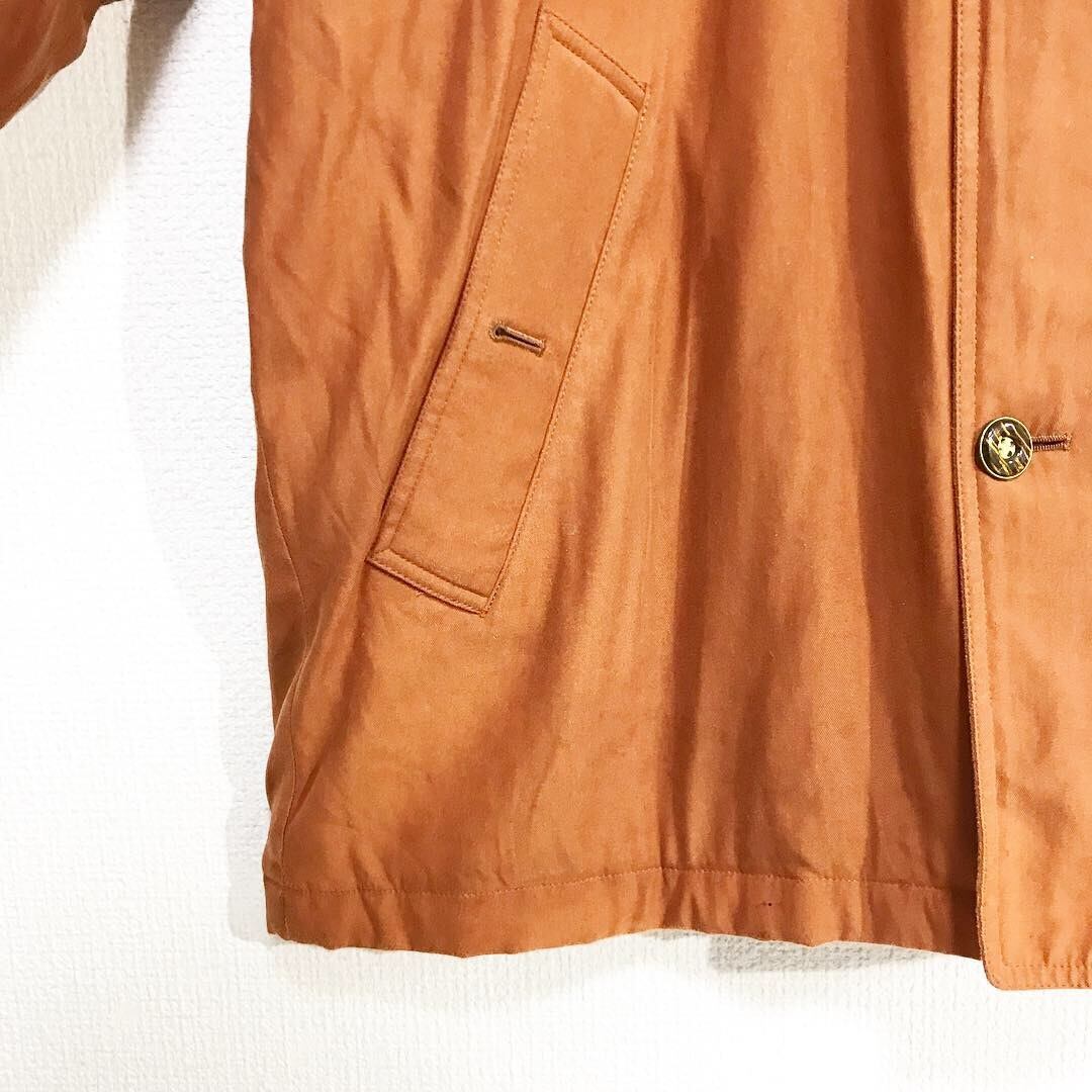オレンジブラウン(レンガ色)の良い色味 取り外し可能なフード部分 襟はブラックフェイクスウェード 裏地はペイズリー 全開けで着た時にチラ見せできます ボタンのセルボタンの模様も良い 胸のジップポケットも気が利いてます