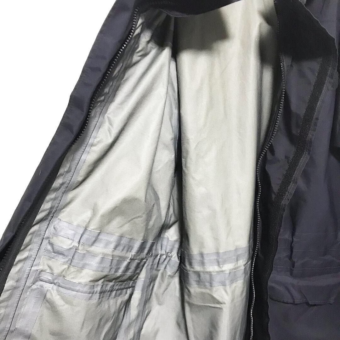 ハリのある高密度ナイロン ゴアテックスなので蒸気を逃がしてくれて蒸れません ショルダーストラップに胸のネームプレートを貼り付けるベルクロ ウエスト部分の絞り ベルクロフラップポケット フロントはジップとベルクロのダブル 裾は中に絞りが付いていてある程度のサイズの違いもカバーできます フード収納可能