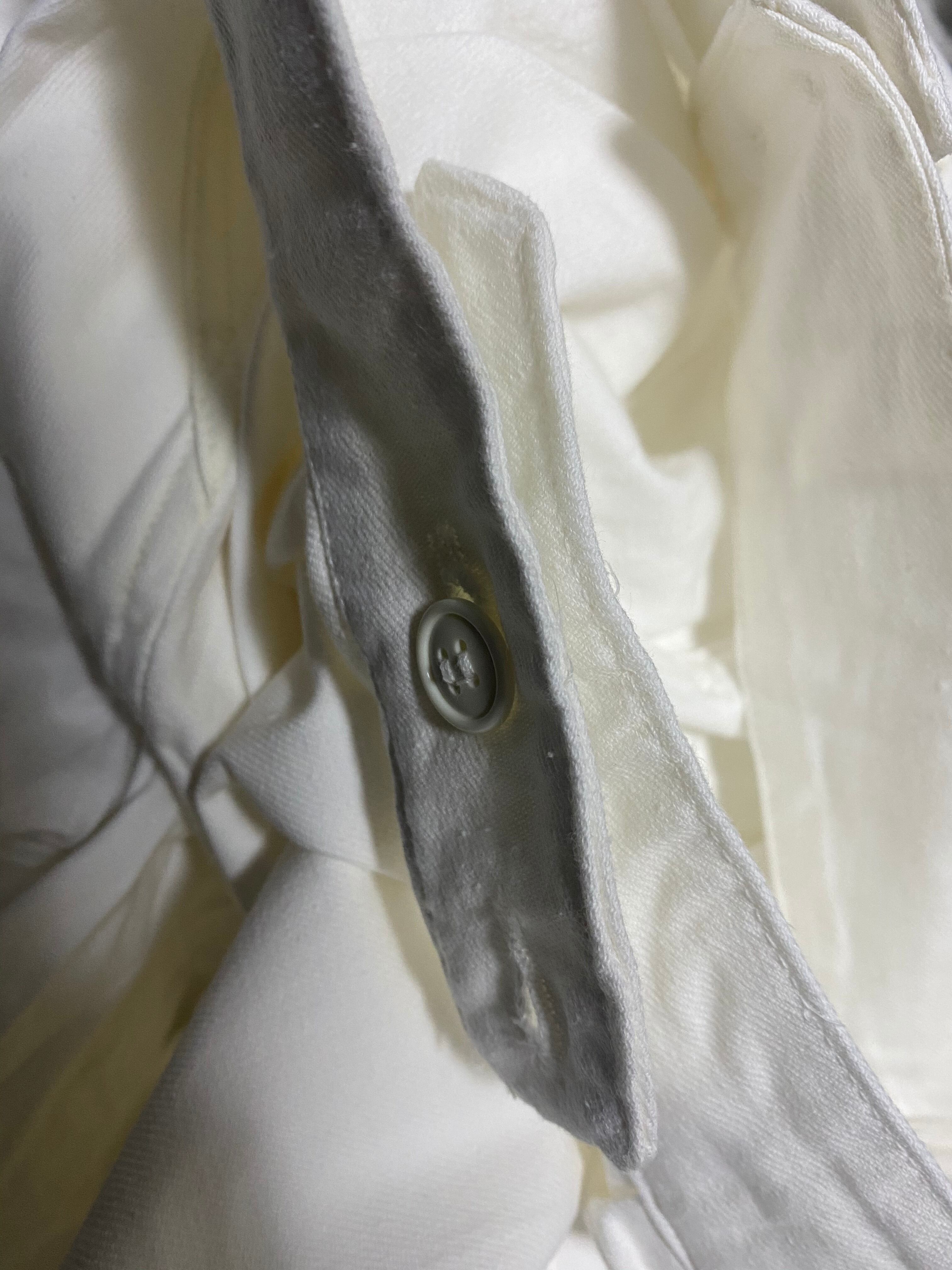 軍モノ特有のパキパキの粗めの無骨いコットン ウエスト裏 裾にボタンが付いています