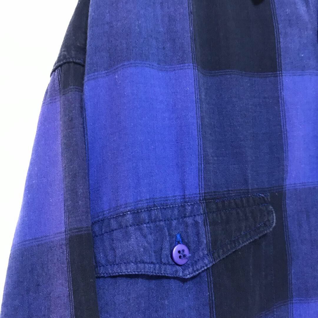 1990's ブルーチェックパターンコットンシャツ