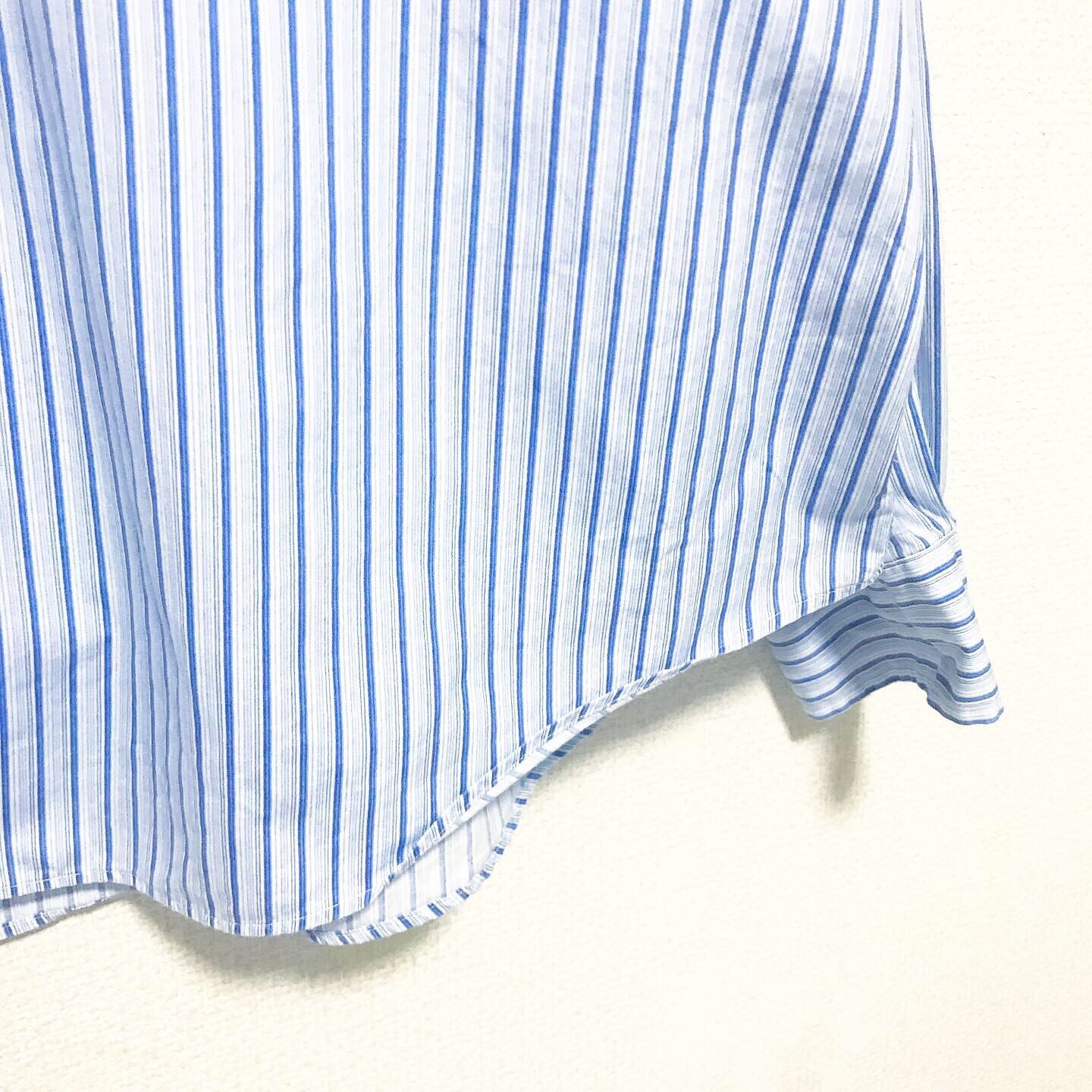 乾いたパリッとしたコットンポプリン地のストライプパターン 裾はラウンドカット