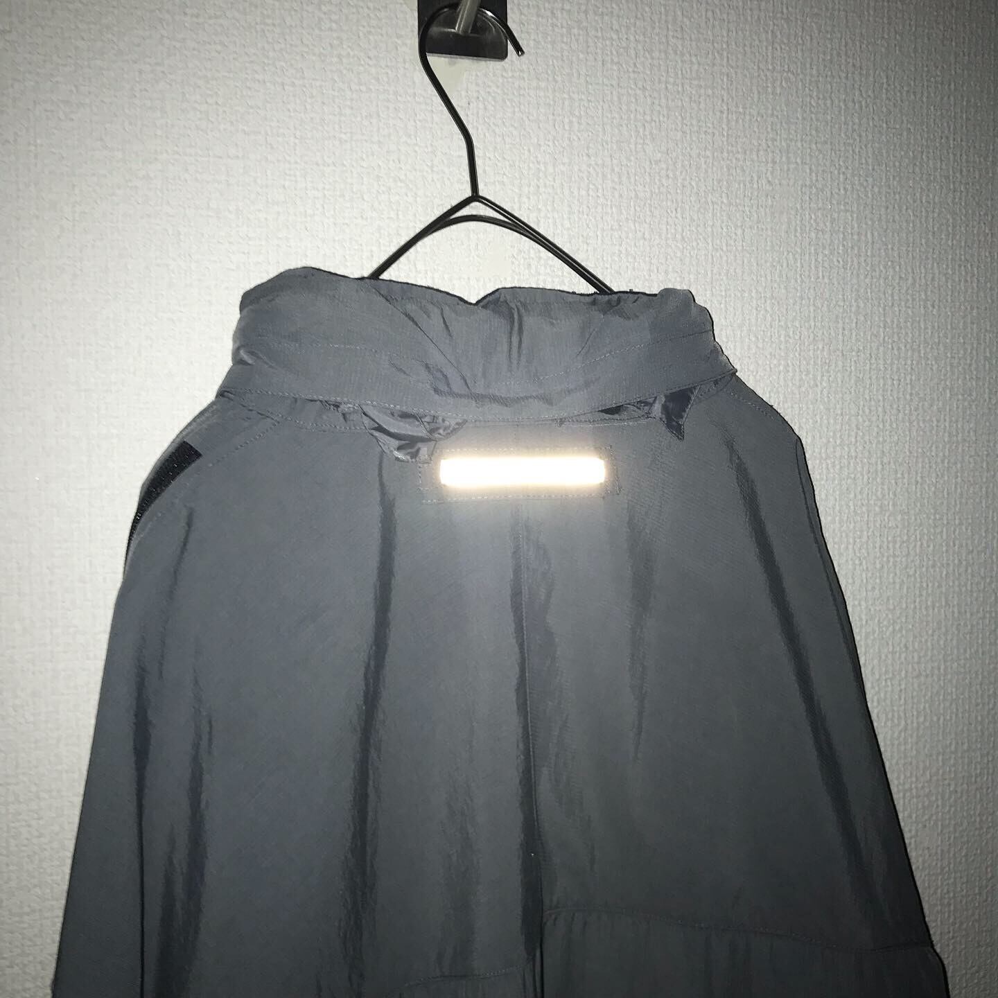 肩から袖先にかけてジップが付いています 開けるとリフレクターのノーティカロゴ 首元にもロゴリフレクター 収納フード搭載 リップストップのecwcsのアイテムを彷彿とさせるソリッドグレー