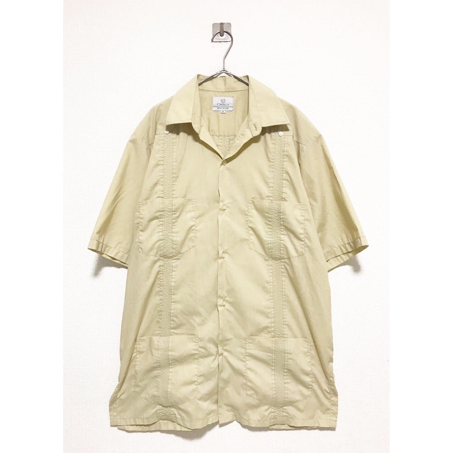 1990's オーバーサイズベージュ刺繍キューバシャツ