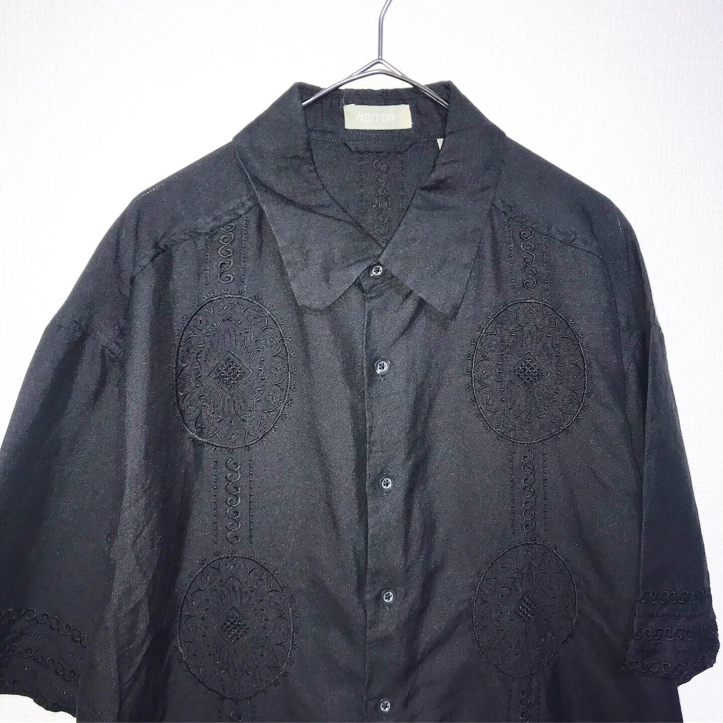 1990's オーバーサイズベージュブラック刺繍キューバシャツ