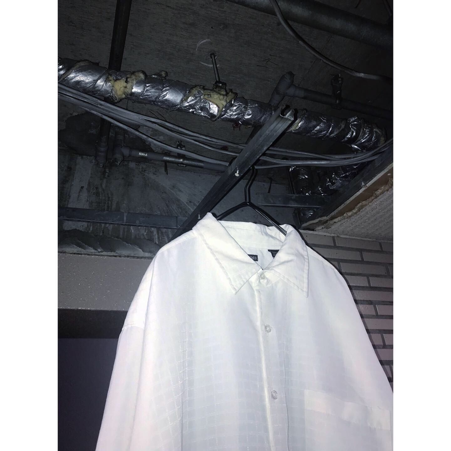 vintage 90's over sized white check pattern poly s/s shirt