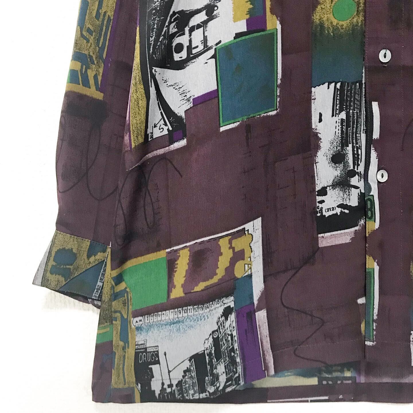 壁画パターン しっとりとした厚めのポリ素材 暗いバーガンディーの大人の色気がある一着