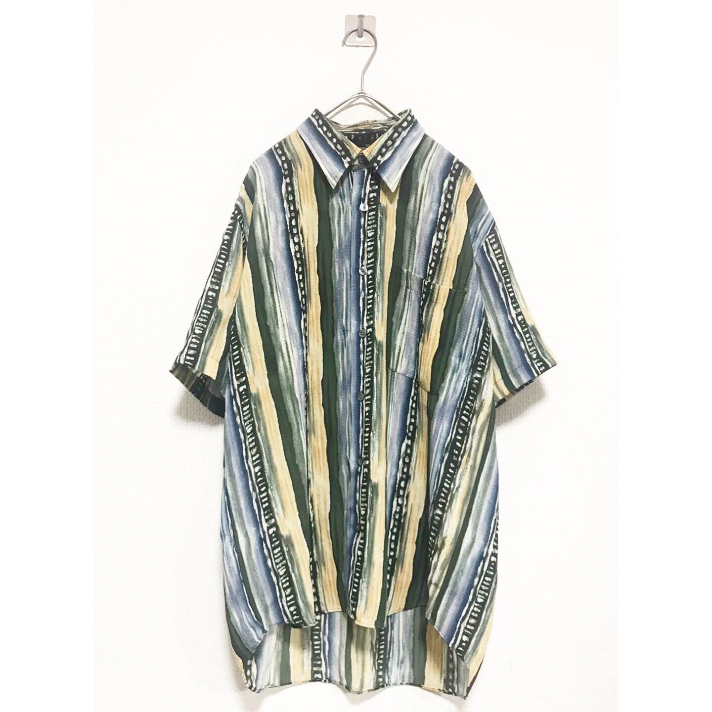 絵の具で描かれた様な壁画パターン 縦に入った柄と風になびく薄手のポリが良い感じ うれしいワンポケ