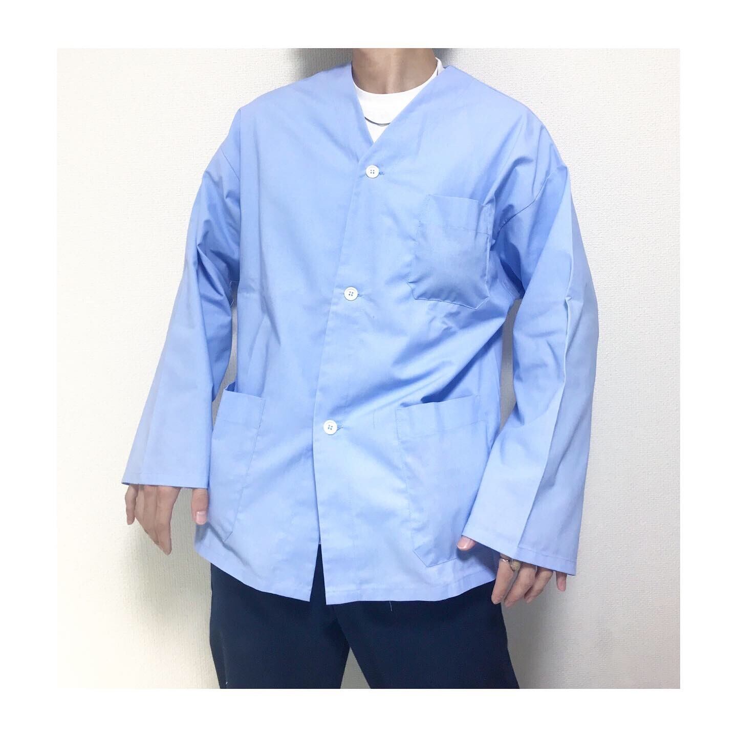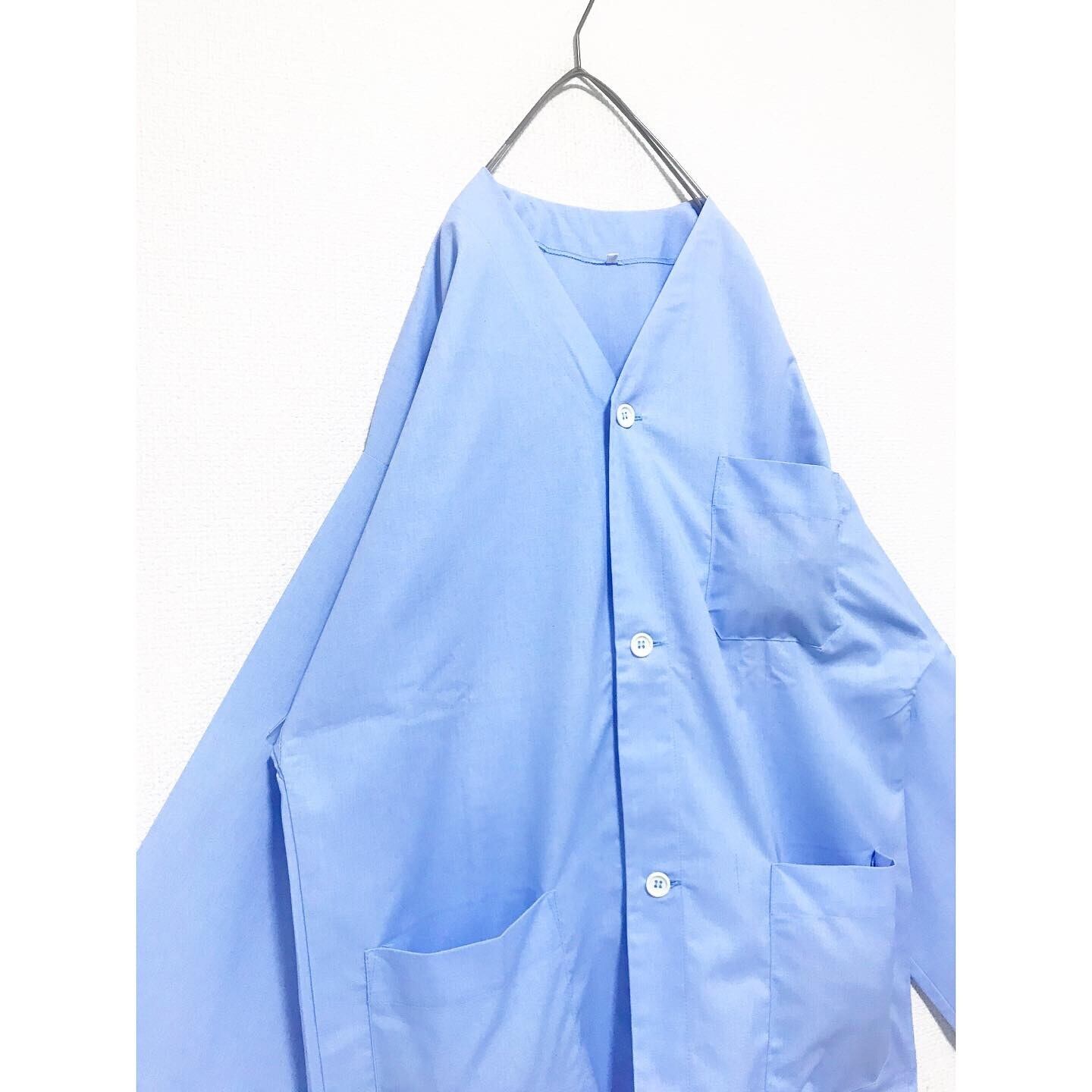 デッドストック 未使用品 ヴィンテージ フランス軍 ライトブルーノーカラーパジャマシャツ